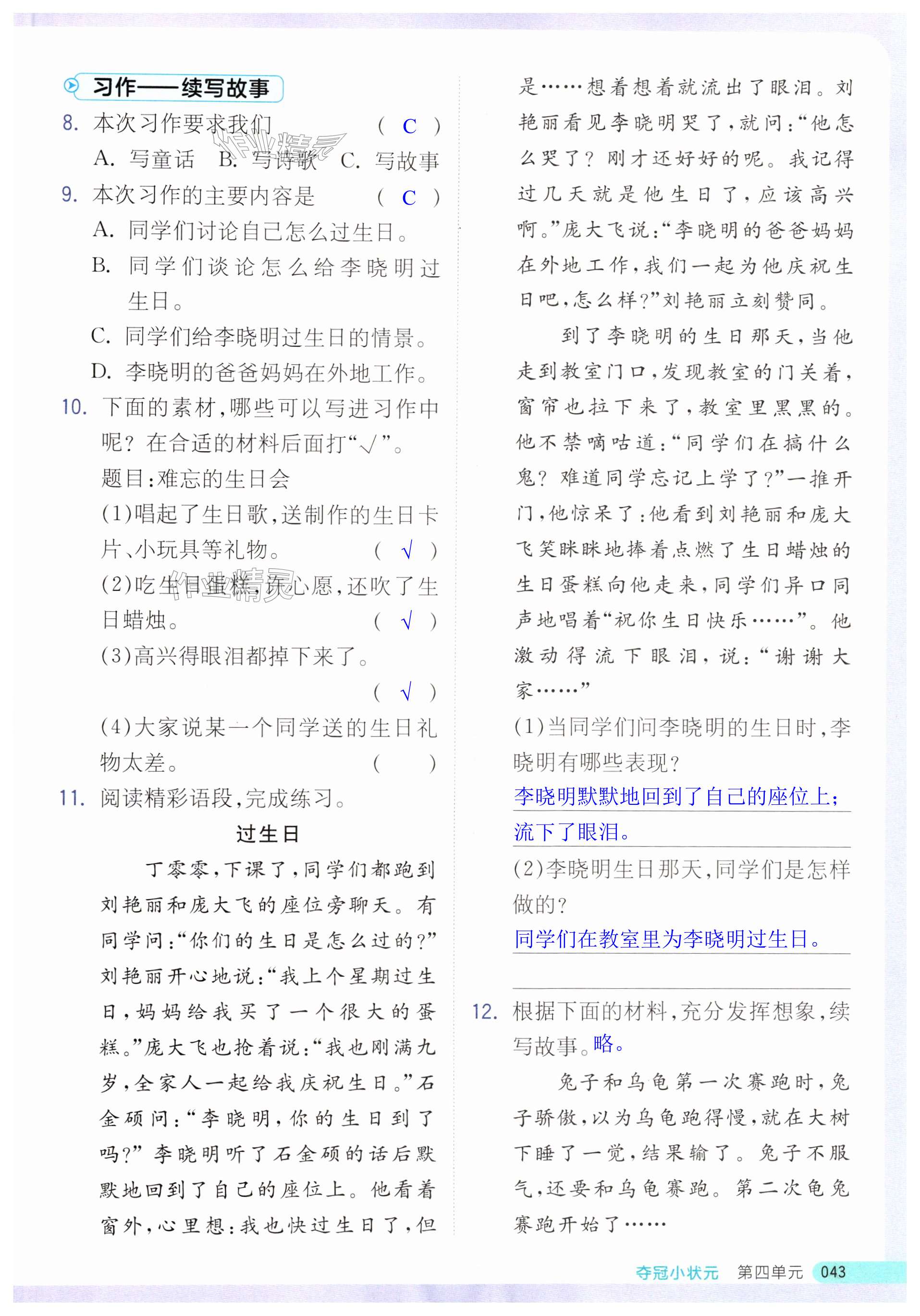 注:目前有些书本章节名称可能整理的还不是很完善,但都是按照顺序排列的,请同学们按照顺序仔细查找。练习册 2024年夺冠小状元课时作业本三年级语文上册人教版 答案主要是用来给同学们做完题方便对答案用的,请勿直接抄袭。