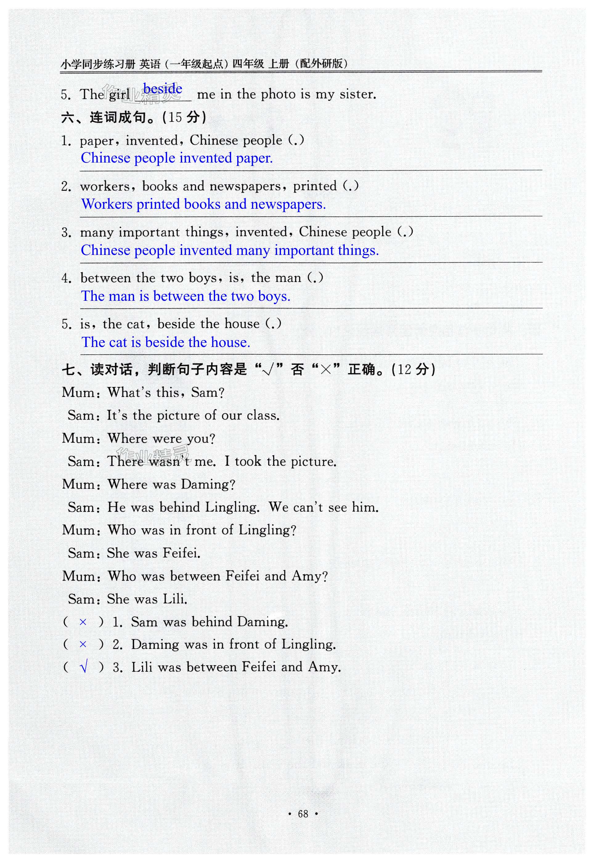 注:目前有些书本章节名称可能整理的还不是很完善,但都是按照顺序排列的,请同学们按照顺序仔细查找。练习册 2024年同步练习册外语教学与研究出版社四年级英语上册外研版一年级起点山东专版 答案主要是用来给同学们做完题方便对答案用的,请勿直接抄袭。