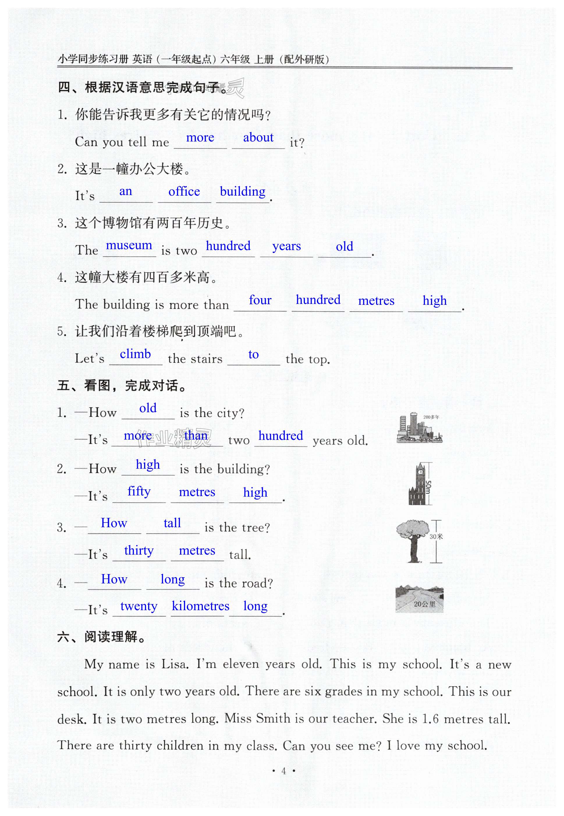 注:目前有些书本章节名称可能整理的还不是很完善,但都是按照顺序排列的,请同学们按照顺序仔细查找。练习册 2024年同步练习册外语教学与研究出版社六年级英语上册外研版一年级起点山东专版 答案主要是用来给同学们做完题方便对答案用的,请勿直接抄袭。