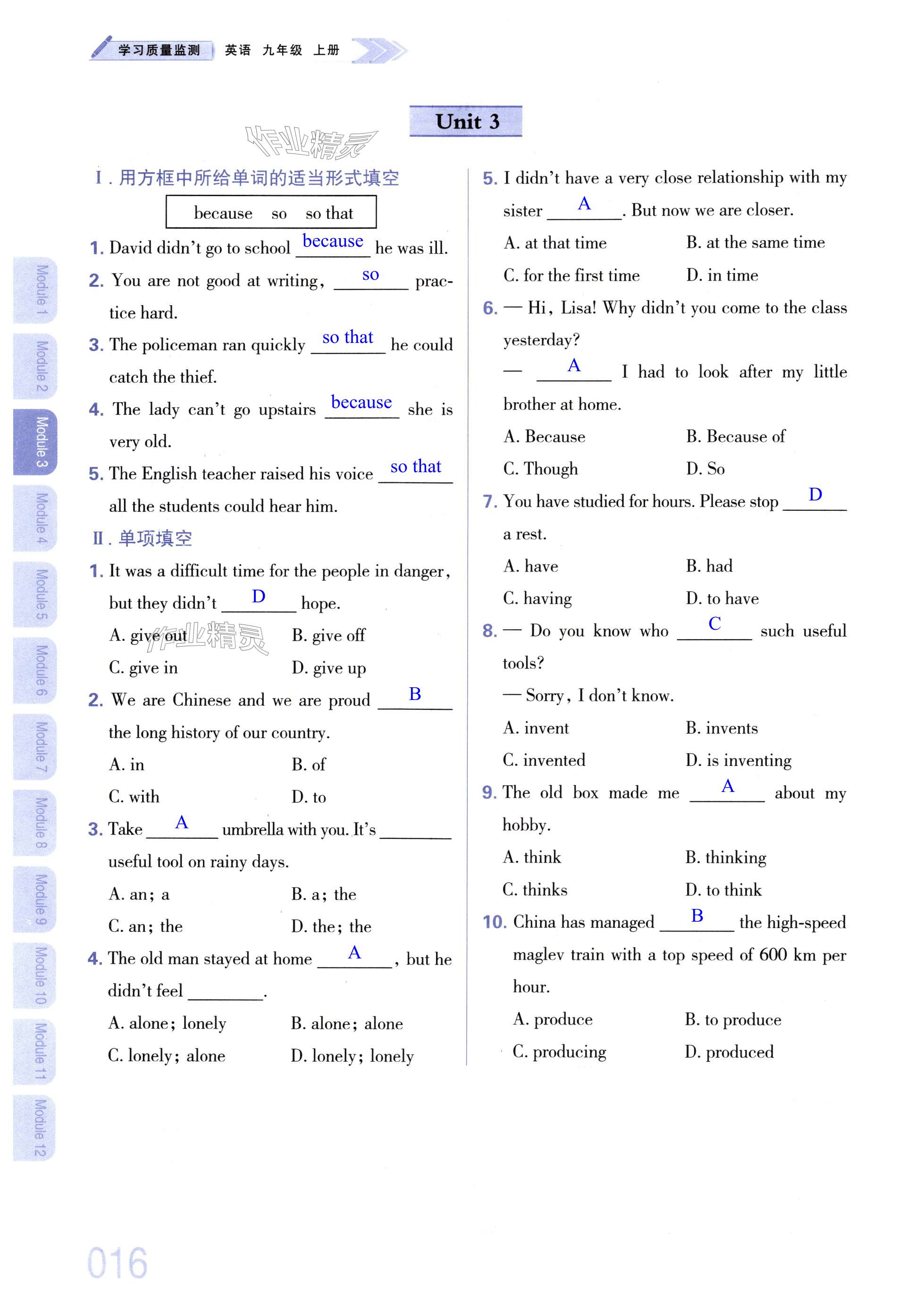 注:目前有些书本章节名称可能整理的还不是很完善,但都是按照顺序排列的,请同学们按照顺序仔细查找。练习册 2024年学习质量监测九年级英语上册外研版 答案主要是用来给同学们做完题方便对答案用的,请勿直接抄袭。
