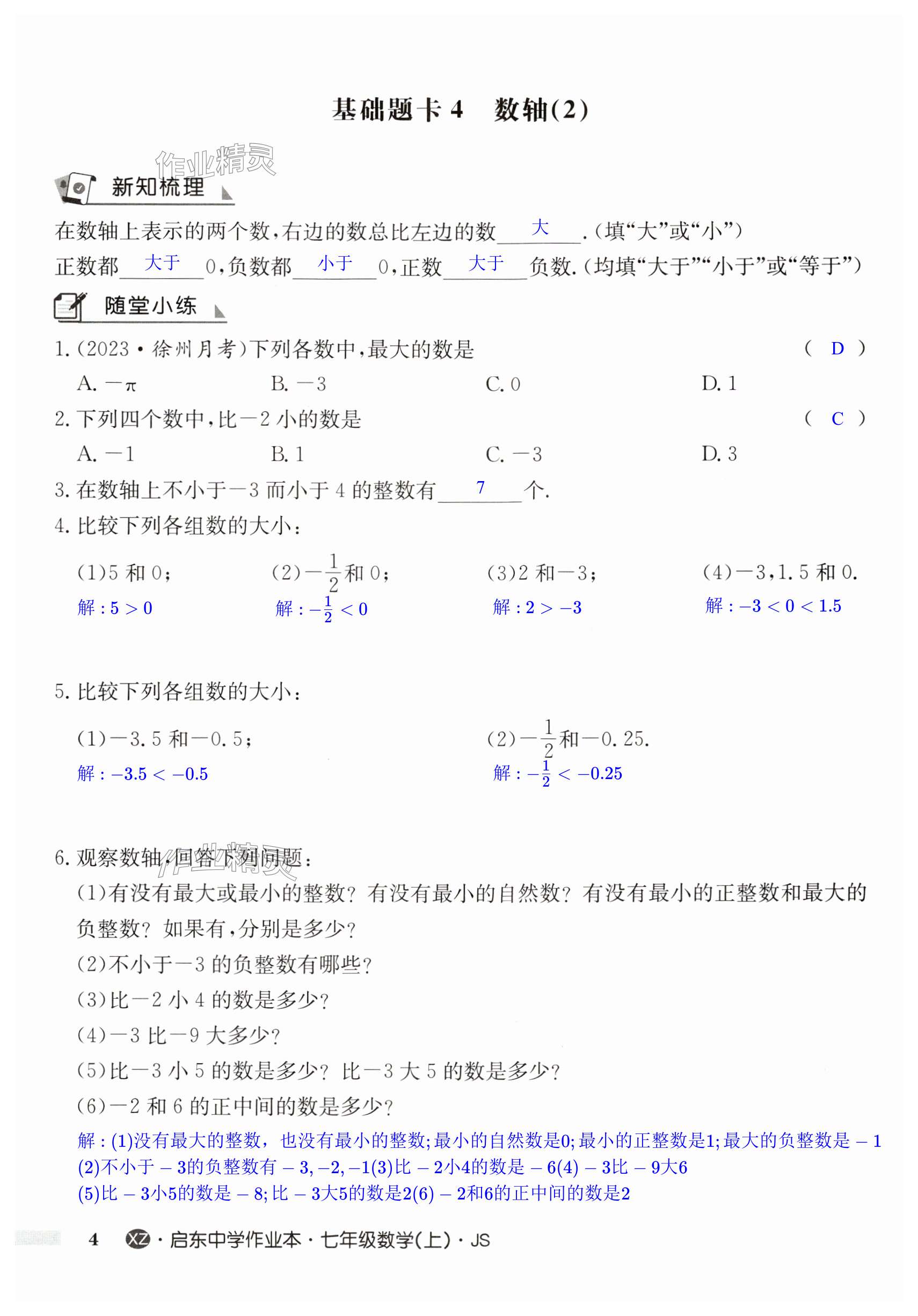 注:目前有些书本章节名称可能整理的还不是很完善,但都是按照顺序排列的,请同学们按照顺序仔细查找。练习册 2024年启东中学作业本七年级数学上册苏科版徐州专版 答案主要是用来给同学们做完题方便对答案用的,请勿直接抄袭。