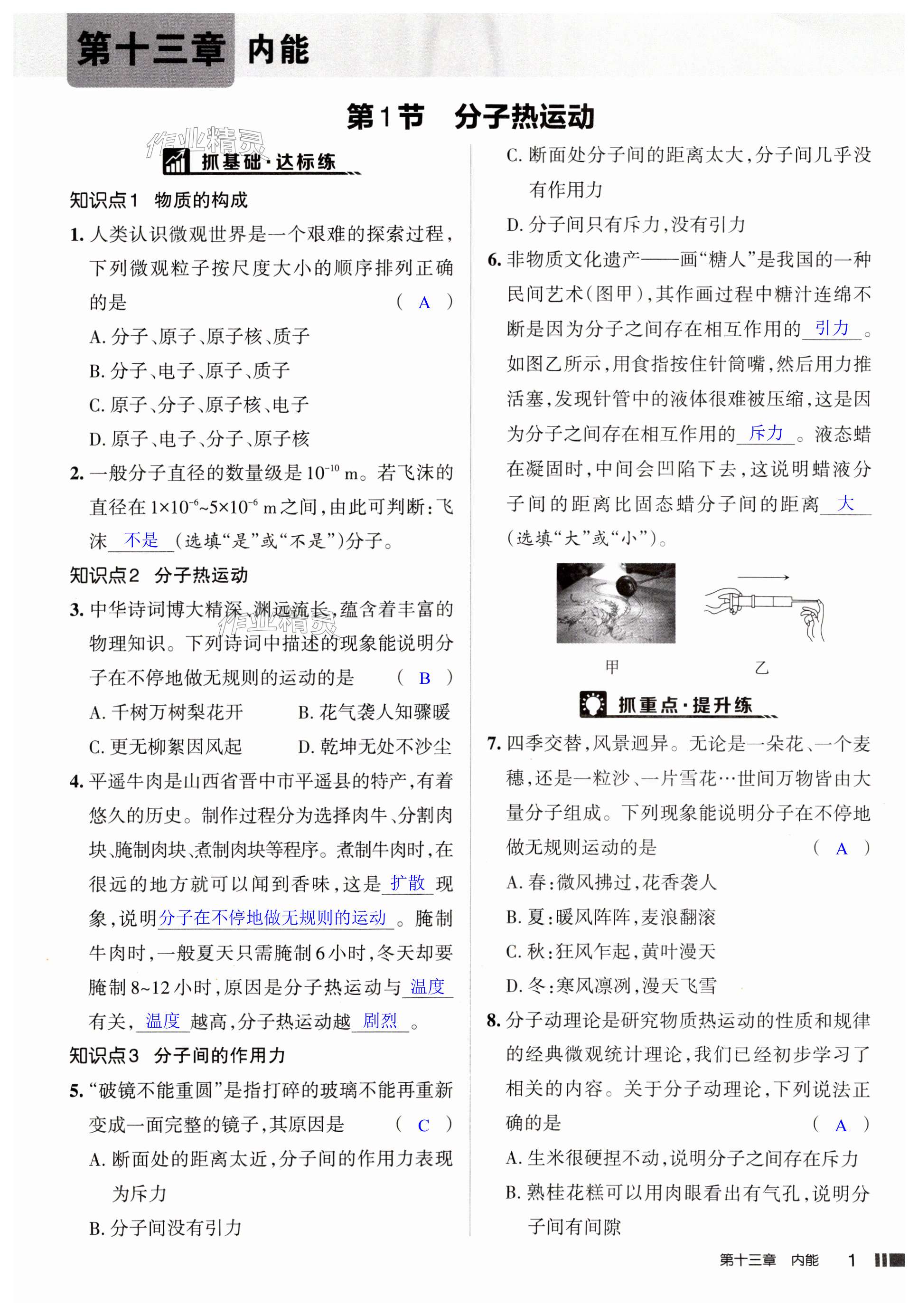 注:目前有些书本章节名称可能整理的还不是很完善,但都是按照顺序排列的,请同学们按照顺序仔细查找。练习册 2024年名校作业九年级物理上册人教版山西专版 答案主要是用来给同学们做完题方便对答案用的,请勿直接抄袭。
