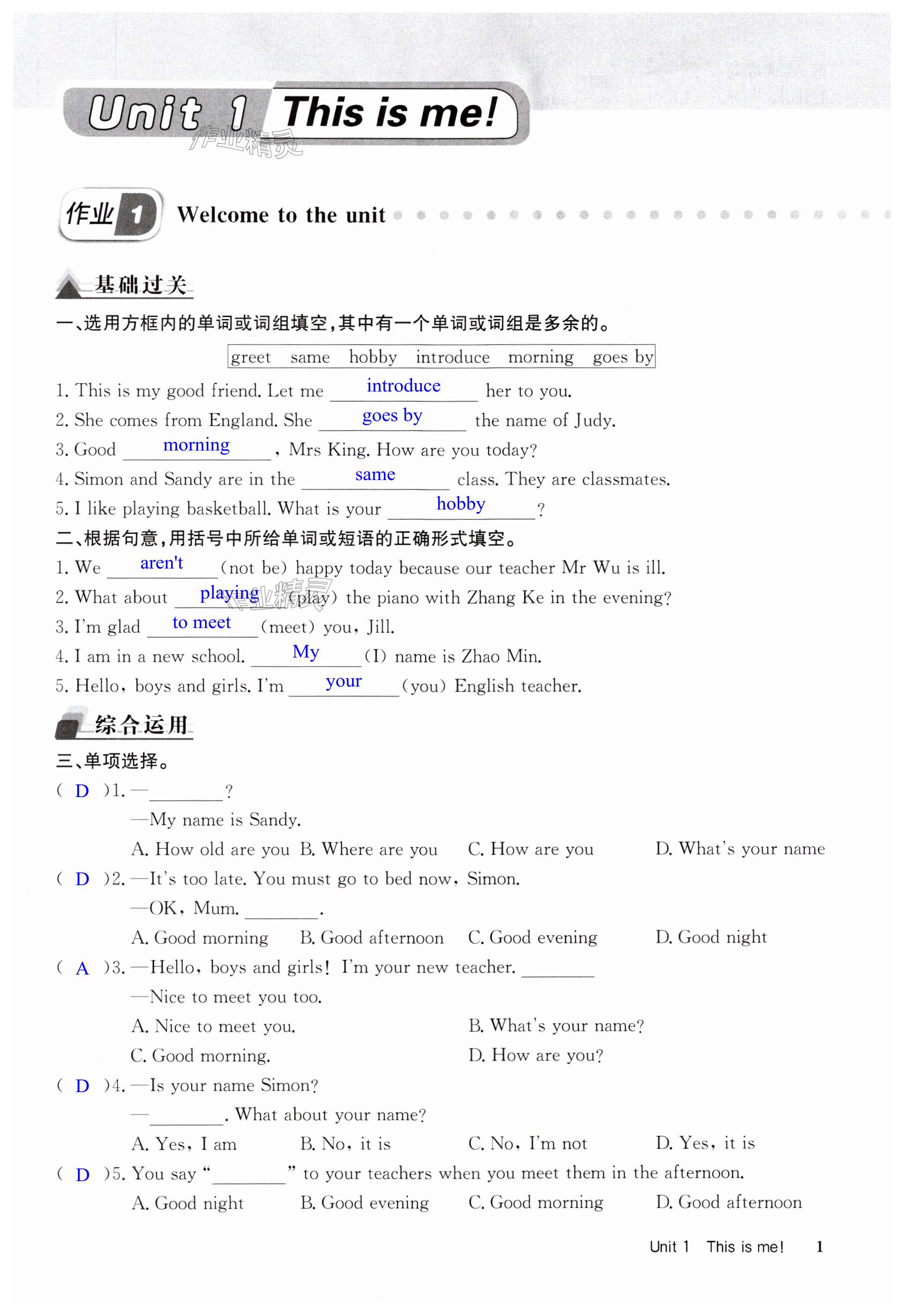 注:目前有些书本章节名称可能整理的还不是很完善,但都是按照顺序排列的,请同学们按照顺序仔细查找。练习册 2024年启东中学作业本七年级英语上册译林版徐州专版 答案主要是用来给同学们做完题方便对答案用的,请勿直接抄袭。