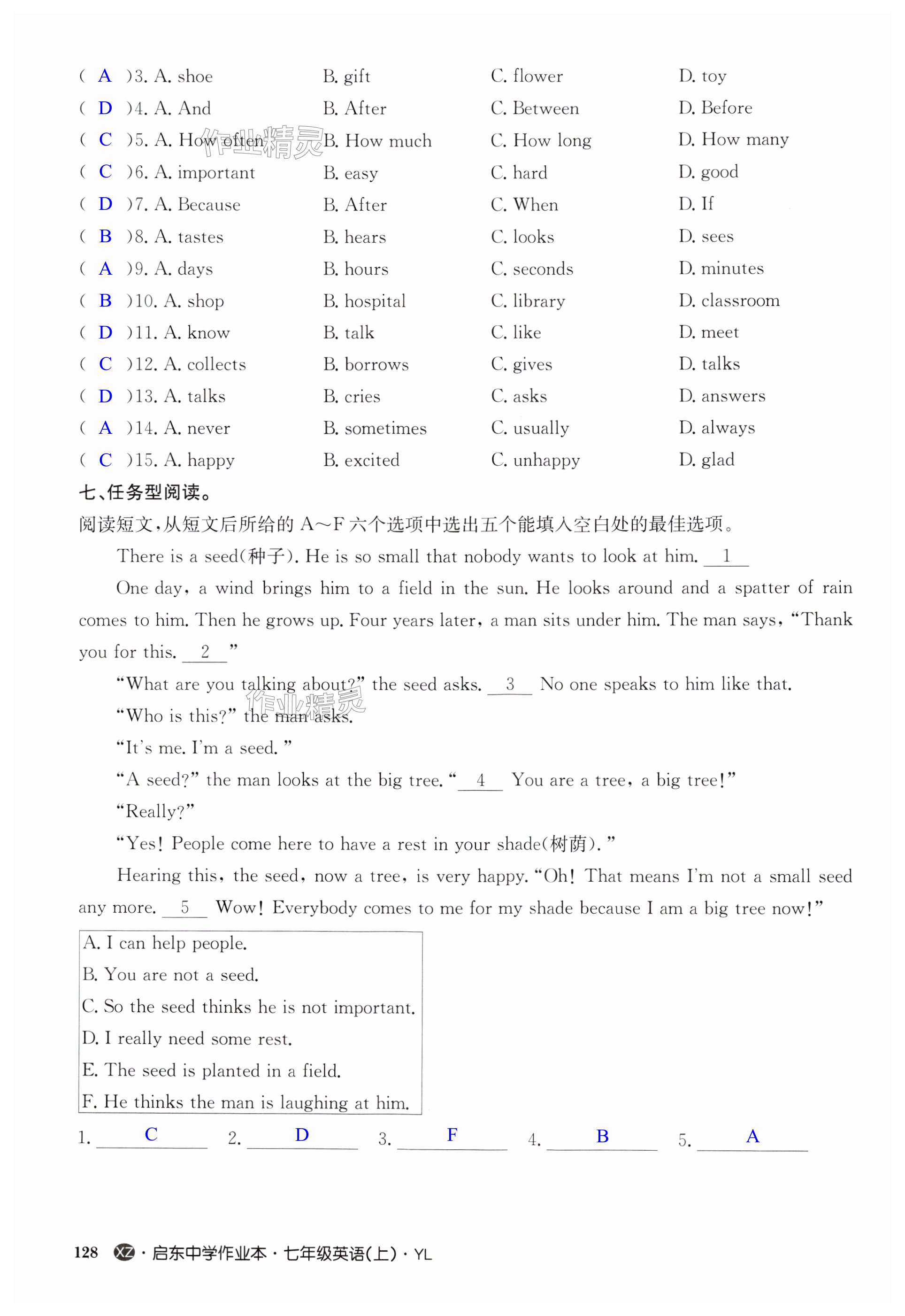 注:目前有些书本章节名称可能整理的还不是很完善,但都是按照顺序排列的,请同学们按照顺序仔细查找。练习册 2024年启东中学作业本七年级英语上册译林版徐州专版 答案主要是用来给同学们做完题方便对答案用的,请勿直接抄袭。