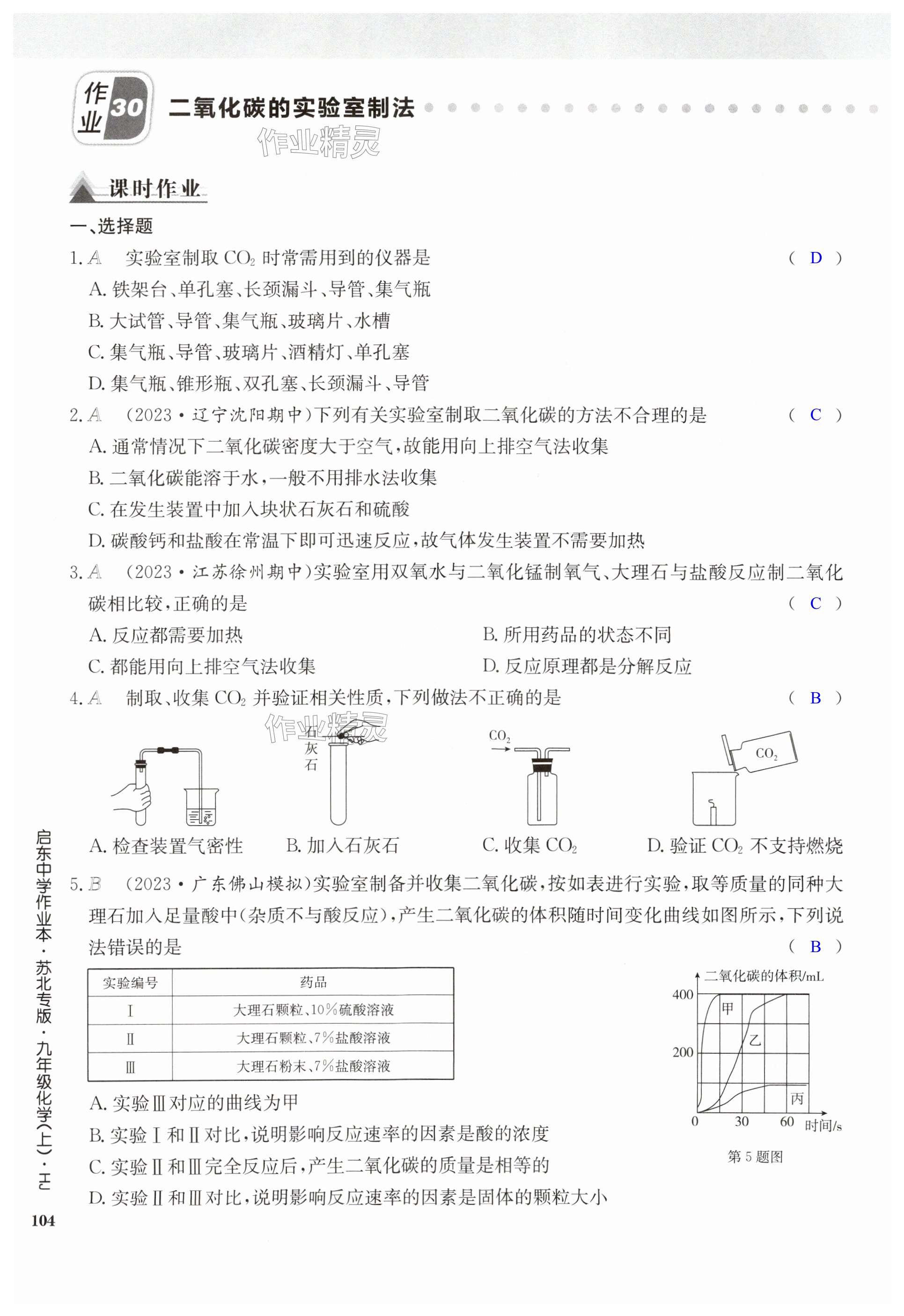 注:目前有些书本章节名称可能整理的还不是很完善,但都是按照顺序排列的,请同学们按照顺序仔细查找。练习册 2024年启东中学作业本九年级化学上册沪教版苏北专版 答案主要是用来给同学们做完题方便对答案用的,请勿直接抄袭。