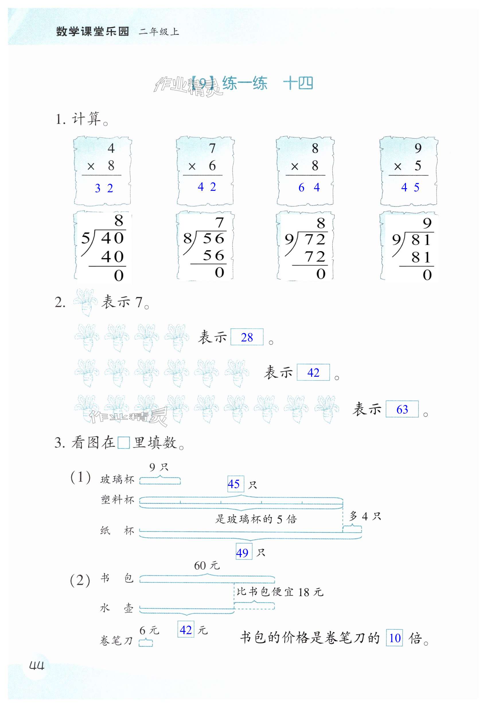 注:目前有些书本章节名称可能整理的还不是很完善,但都是按照顺序排列的,请同学们按照顺序仔细查找。练习册 2024年数学课堂乐园二年级上册浙教版浙江教育出版社 答案主要是用来给同学们做完题方便对答案用的,请勿直接抄袭。