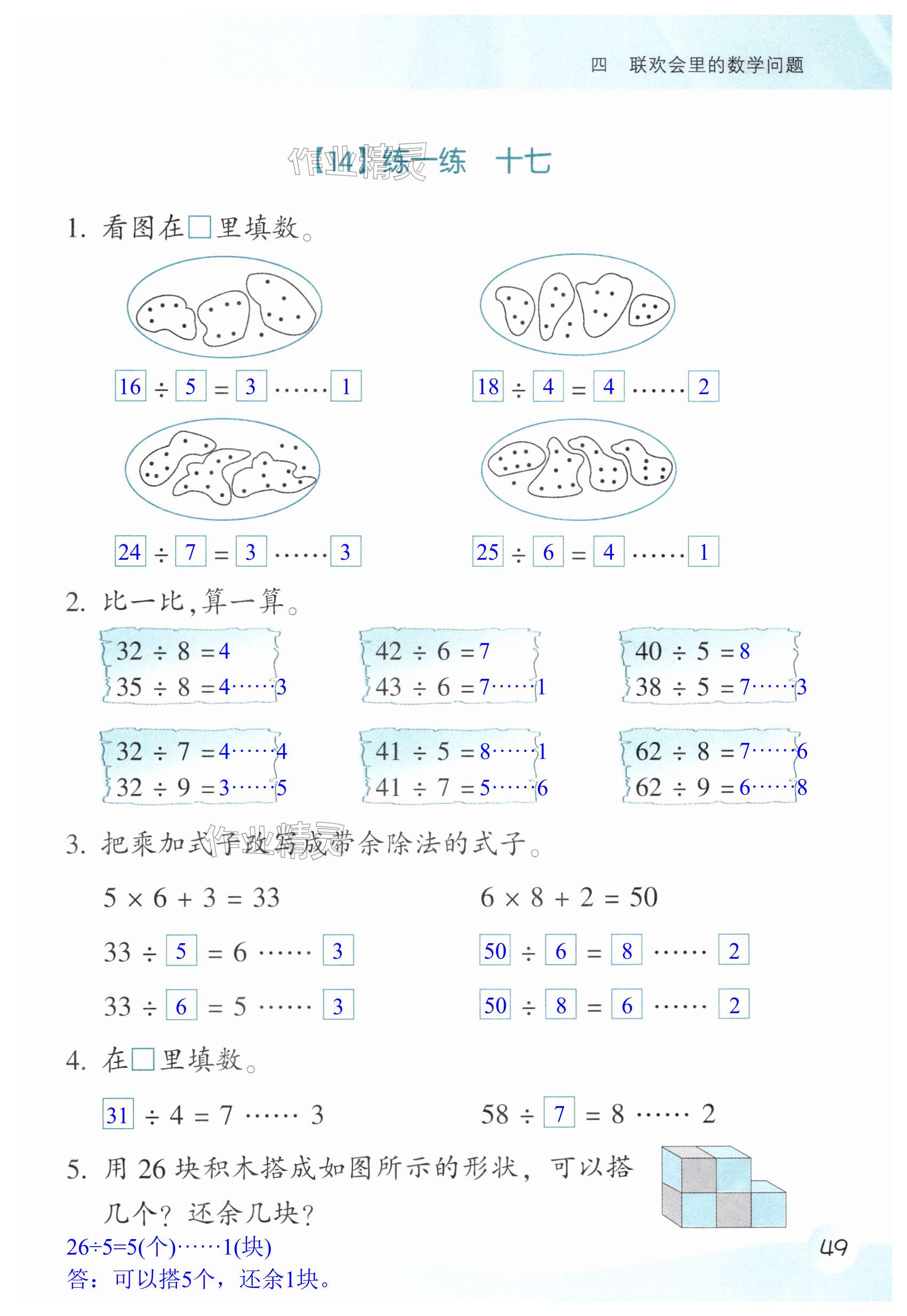 注:目前有些书本章节名称可能整理的还不是很完善,但都是按照顺序排列的,请同学们按照顺序仔细查找。练习册 2024年数学课堂乐园二年级上册浙教版浙江教育出版社 答案主要是用来给同学们做完题方便对答案用的,请勿直接抄袭。