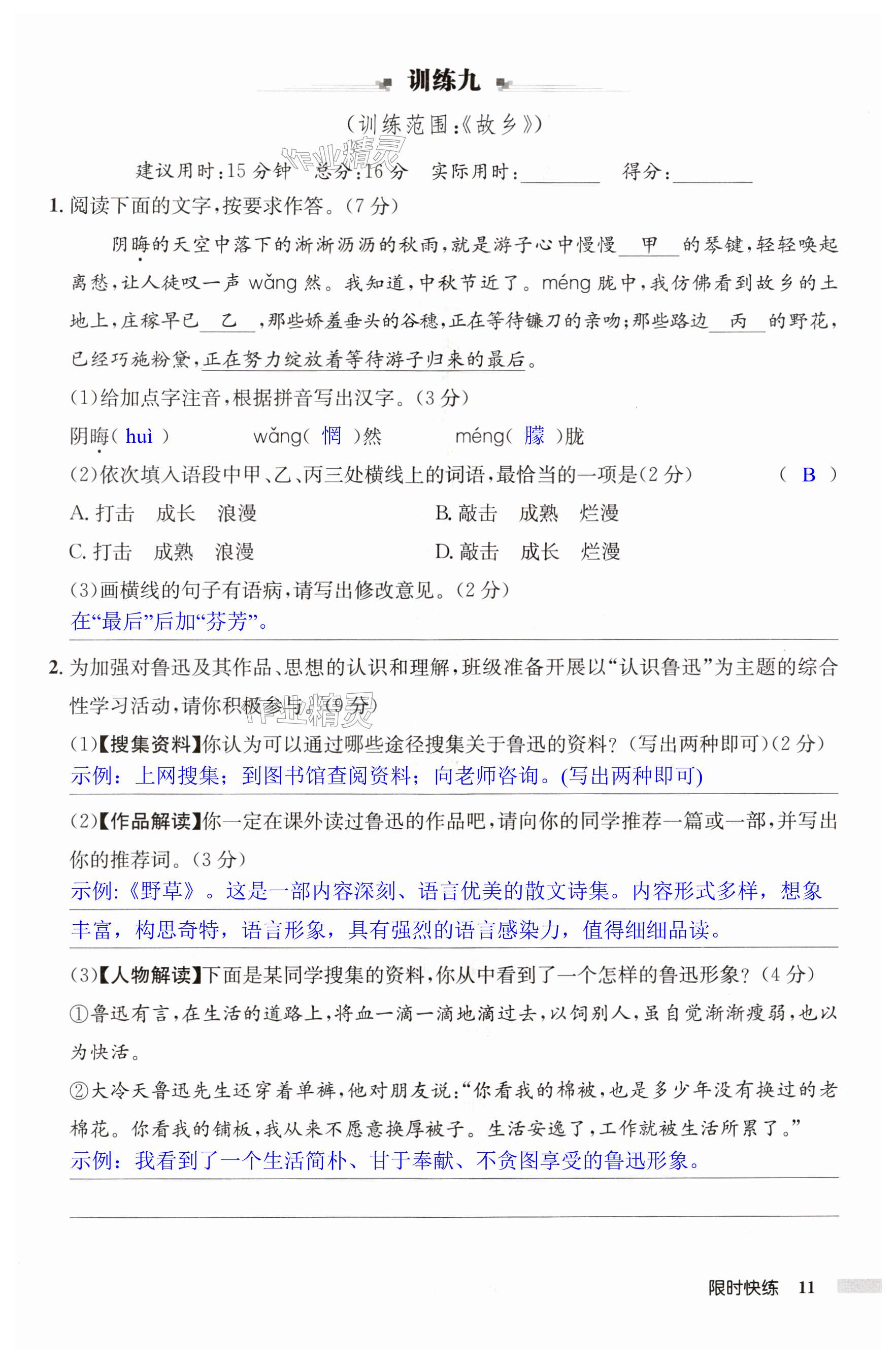 注:目前有些书本章节名称可能整理的还不是很完善,但都是按照顺序排列的,请同学们按照顺序仔细查找。练习册 2024年启东中学作业本九年级语文上册人教版宿迁专版 答案主要是用来给同学们做完题方便对答案用的,请勿直接抄袭。