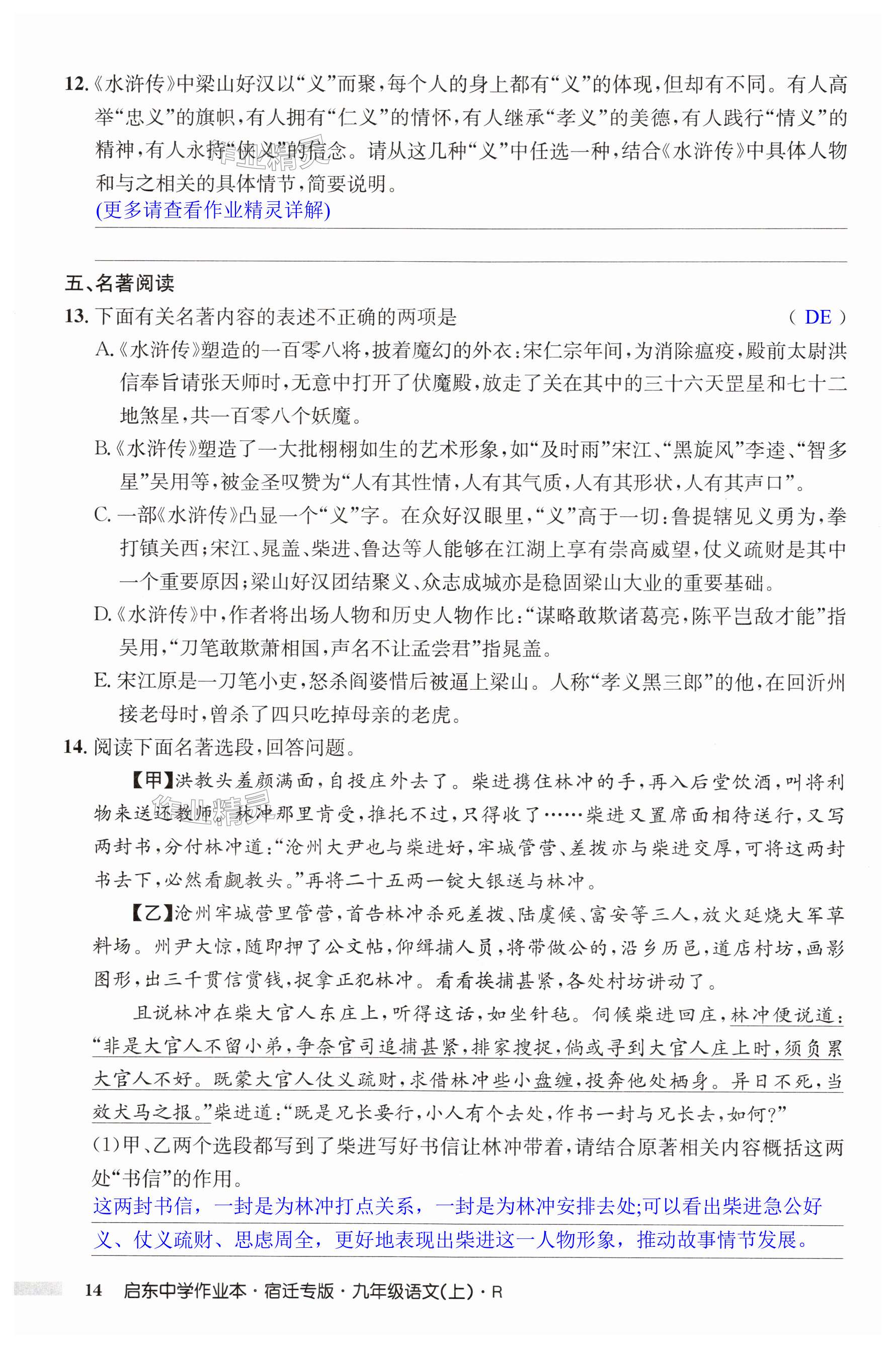 注:目前有些书本章节名称可能整理的还不是很完善,但都是按照顺序排列的,请同学们按照顺序仔细查找。练习册 2024年启东中学作业本九年级语文上册人教版宿迁专版 答案主要是用来给同学们做完题方便对答案用的,请勿直接抄袭。