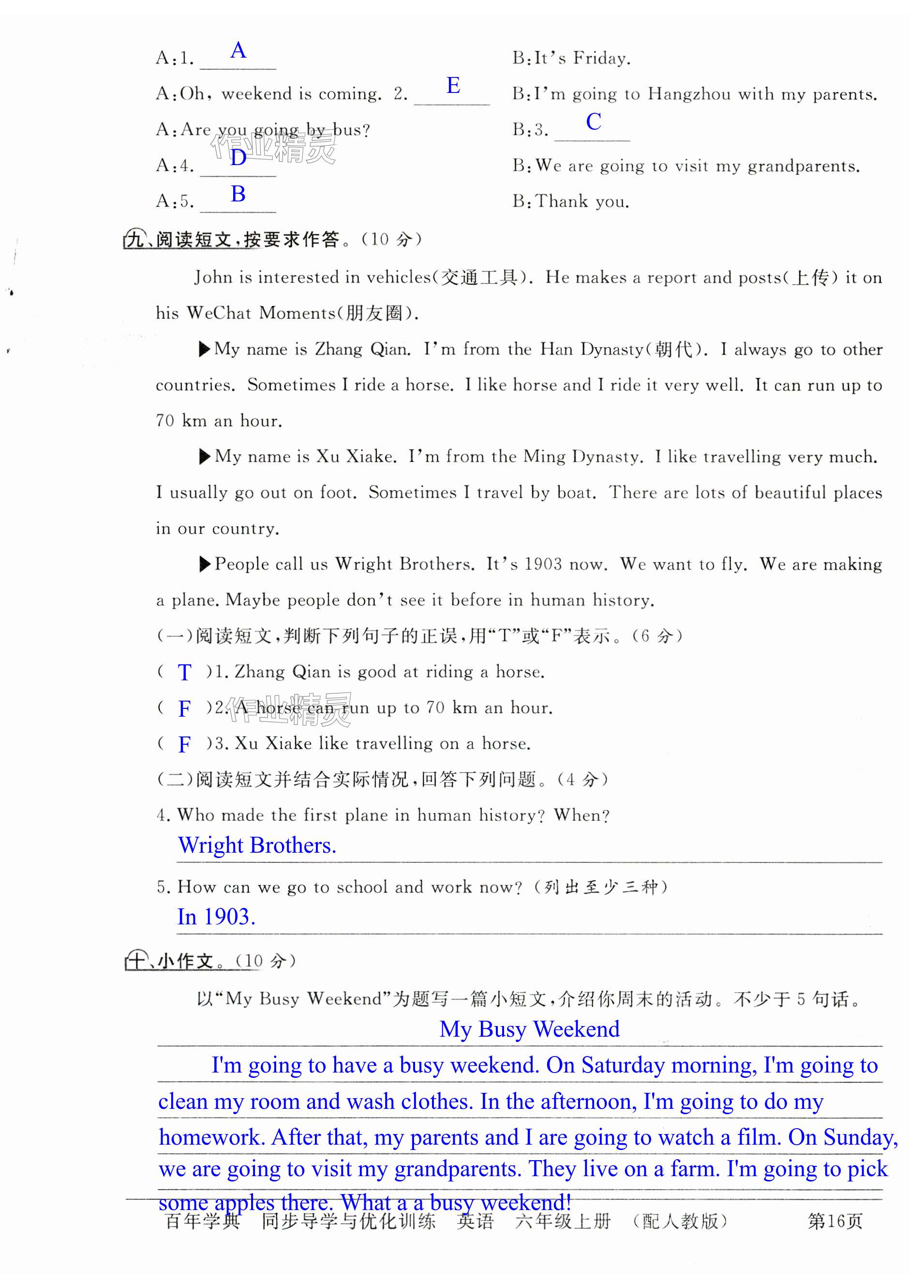 注:目前有些书本章节名称可能整理的还不是很完善,但都是按照顺序排列的,请同学们按照顺序仔细查找。练习册 2024年同步导学与优化训练六年级英语上册人教版 答案主要是用来给同学们做完题方便对答案用的,请勿直接抄袭。