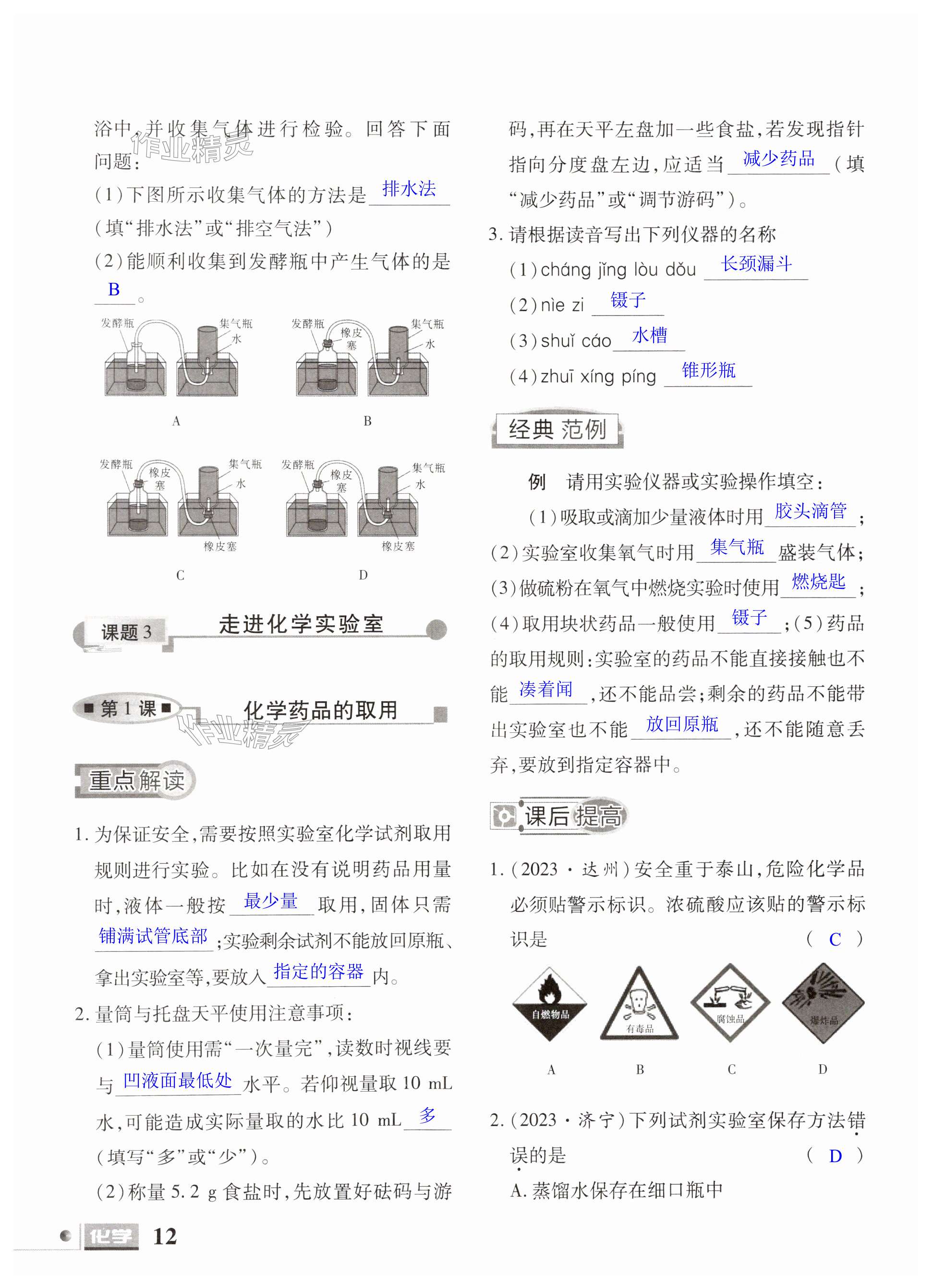 注:目前有些书本章节名称可能整理的还不是很完善,但都是按照顺序排列的,请同学们按照顺序仔细查找。练习册 2024年理科爱好者九年级化学全一册人教版第16-17期 答案主要是用来给同学们做完题方便对答案用的,请勿直接抄袭。
