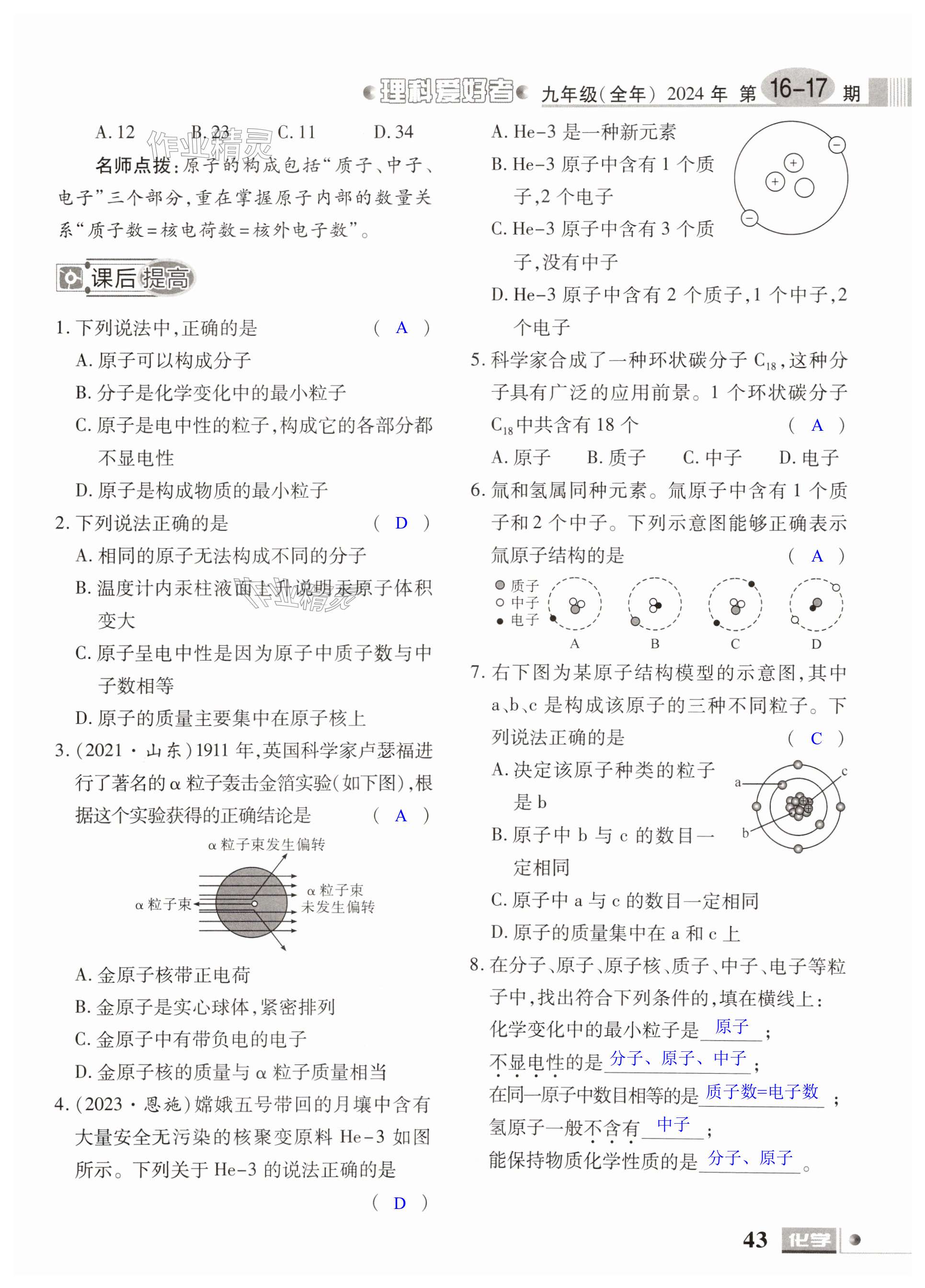2024年理科爱好者九年级化学全一册人教版第16-17期