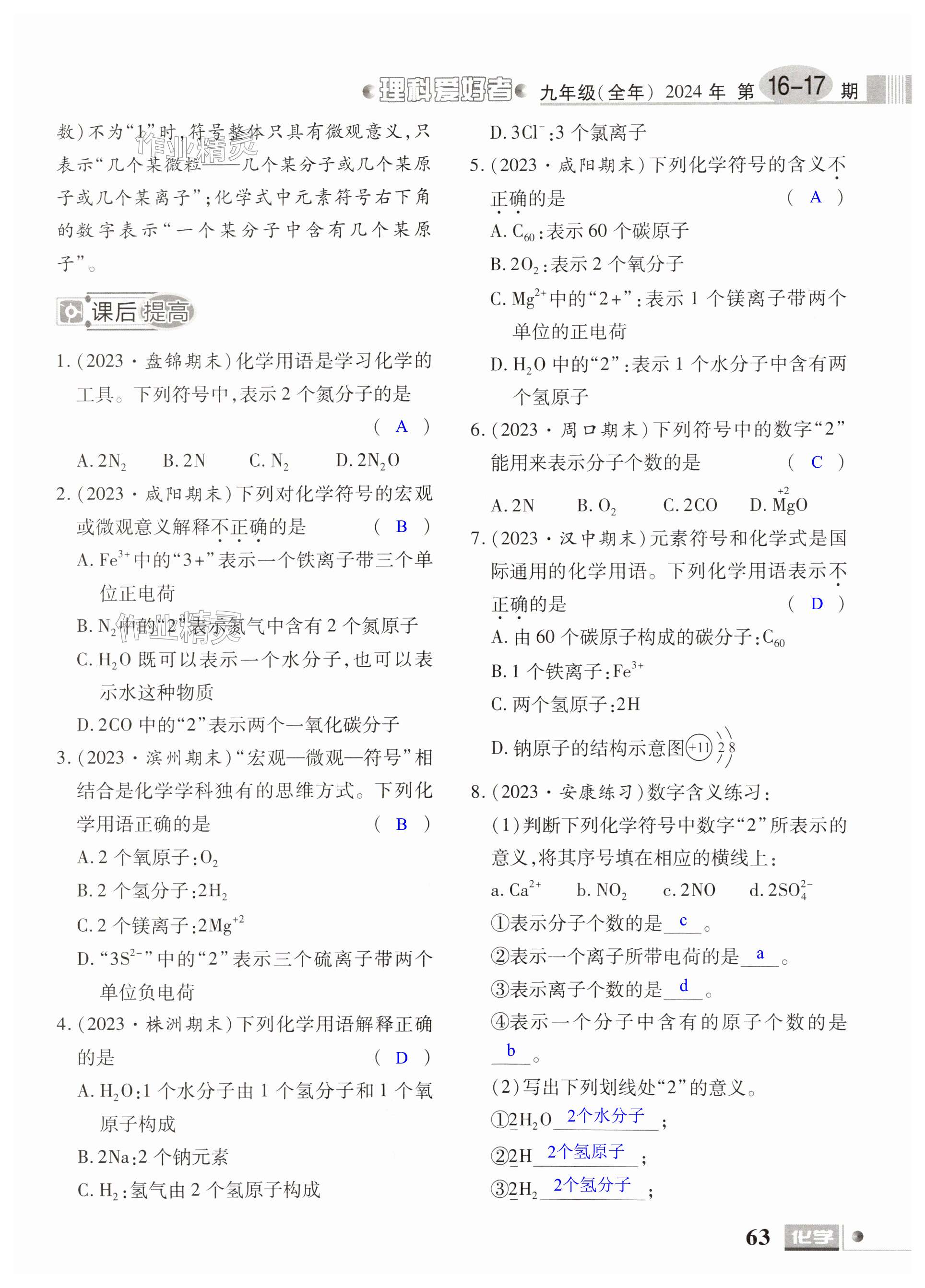 注:目前有些书本章节名称可能整理的还不是很完善,但都是按照顺序排列的,请同学们按照顺序仔细查找。练习册 2024年理科爱好者九年级化学全一册人教版第16-17期 答案主要是用来给同学们做完题方便对答案用的,请勿直接抄袭。