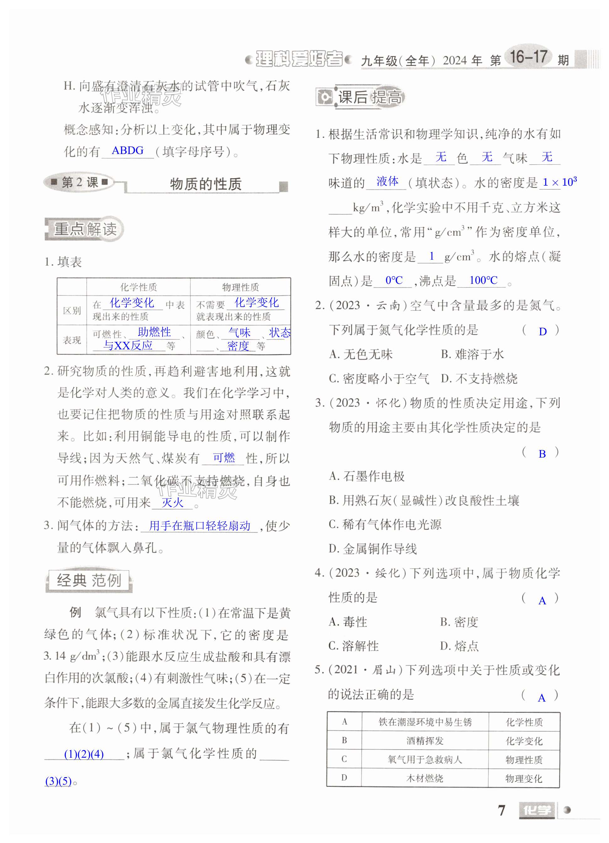 注:目前有些书本章节名称可能整理的还不是很完善,但都是按照顺序排列的,请同学们按照顺序仔细查找。练习册 2024年理科爱好者九年级化学全一册人教版第16-17期 答案主要是用来给同学们做完题方便对答案用的,请勿直接抄袭。