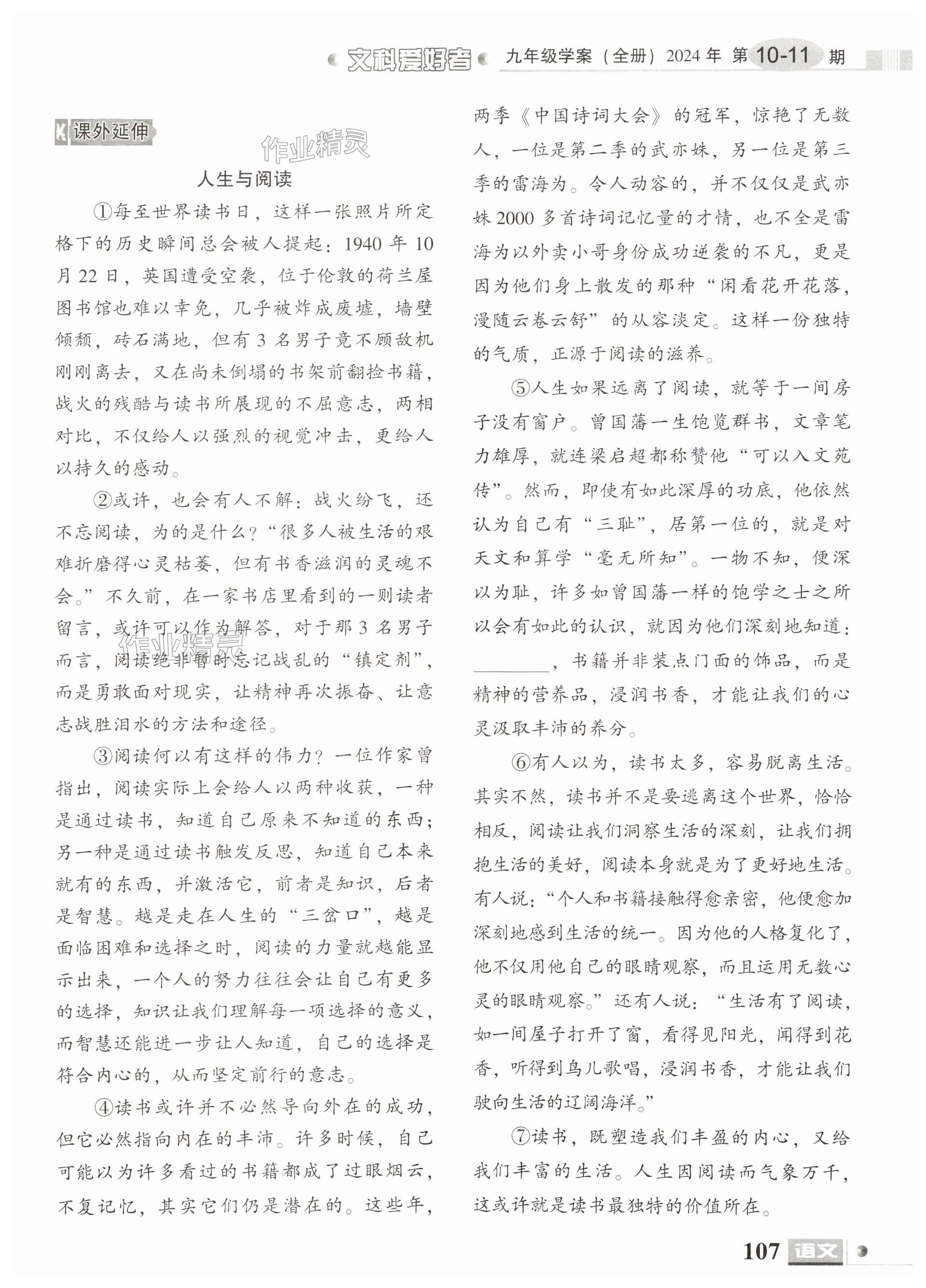 2024年文科爱好者九年级语文全一册人教版第10-11期