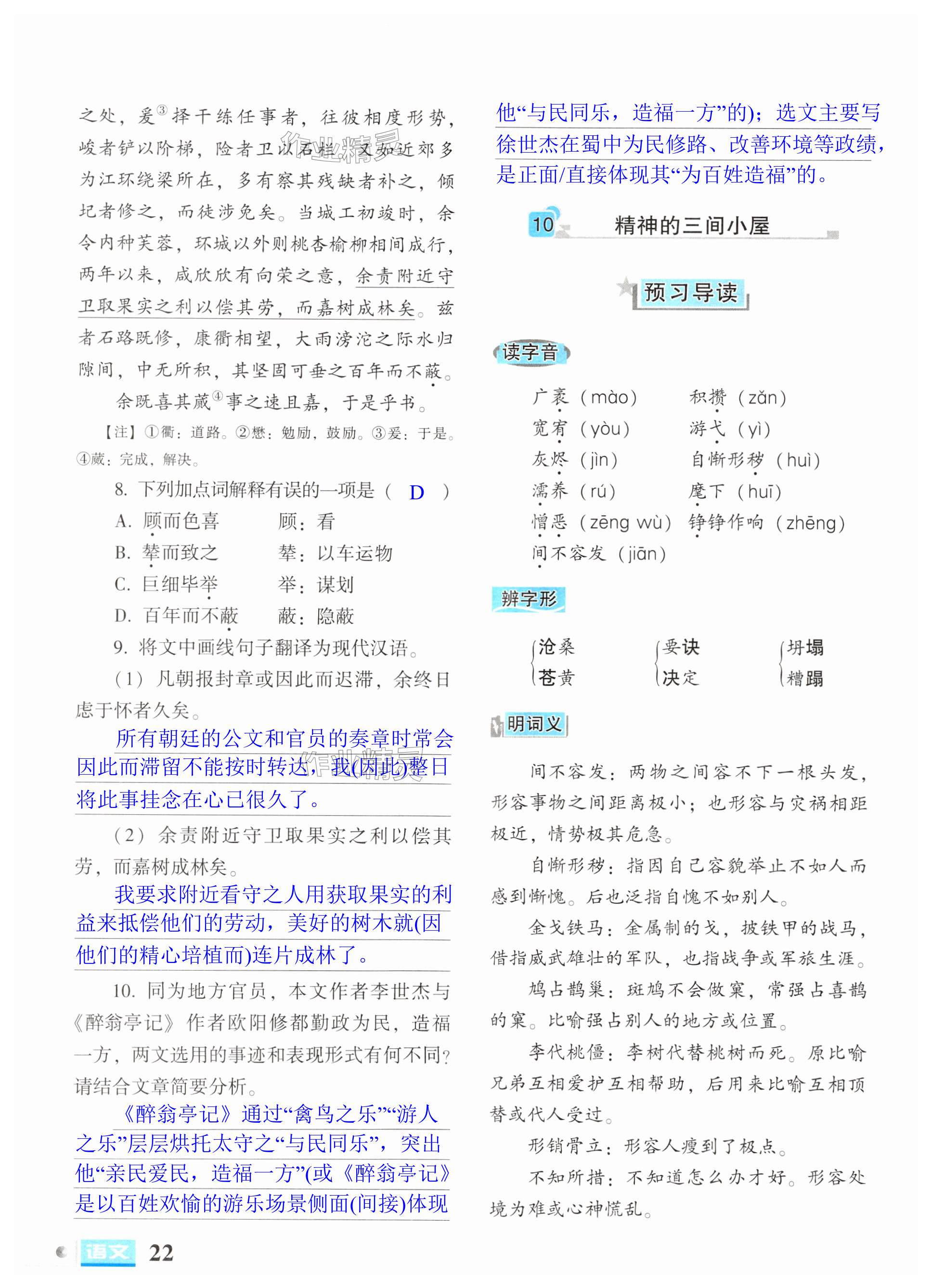 注:目前有些书本章节名称可能整理的还不是很完善,但都是按照顺序排列的,请同学们按照顺序仔细查找。练习册 2024年文科爱好者九年级语文全一册人教版第10-11期 答案主要是用来给同学们做完题方便对答案用的,请勿直接抄袭。