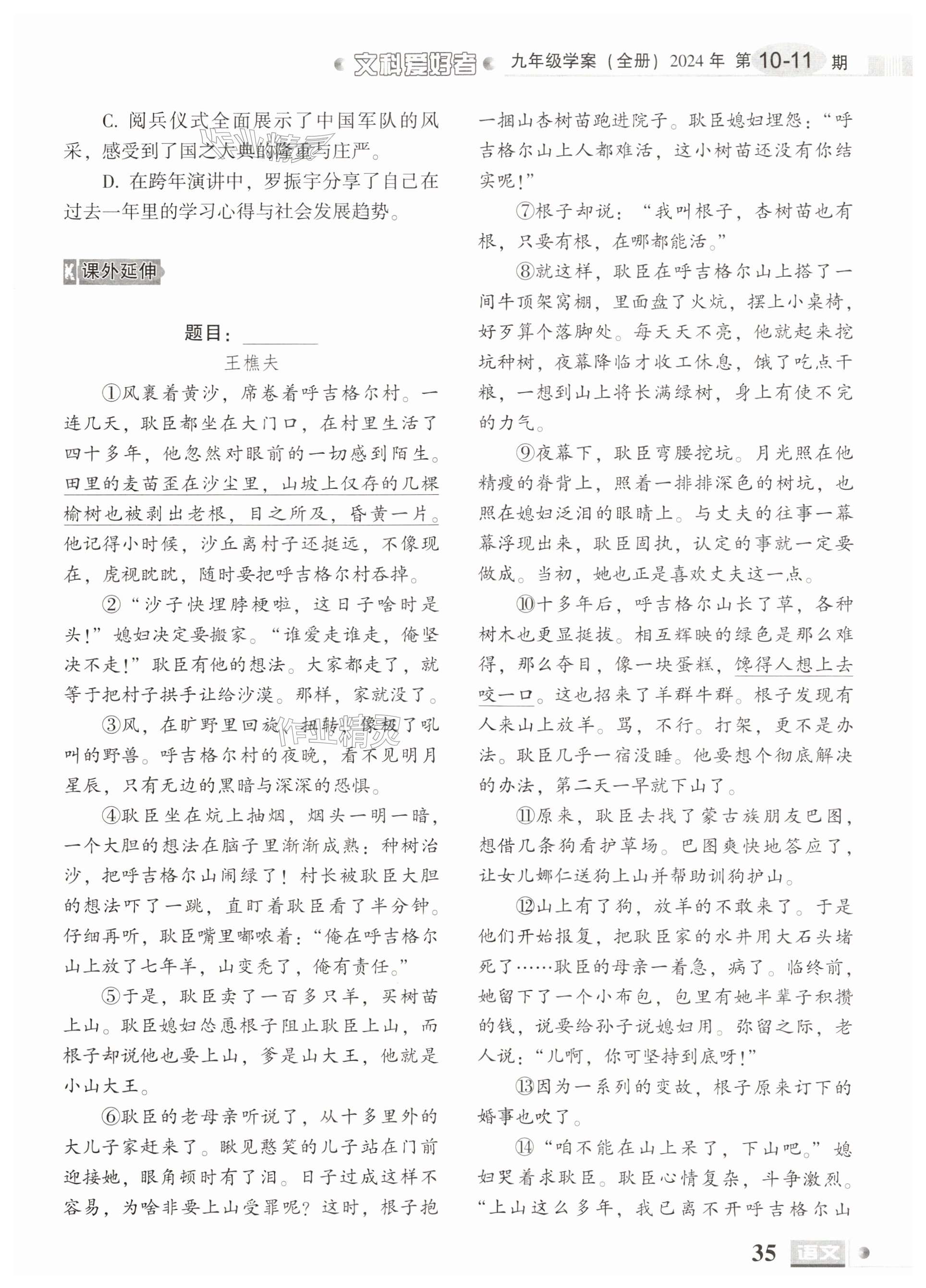 2024年文科爱好者九年级语文全一册人教版第10-11期