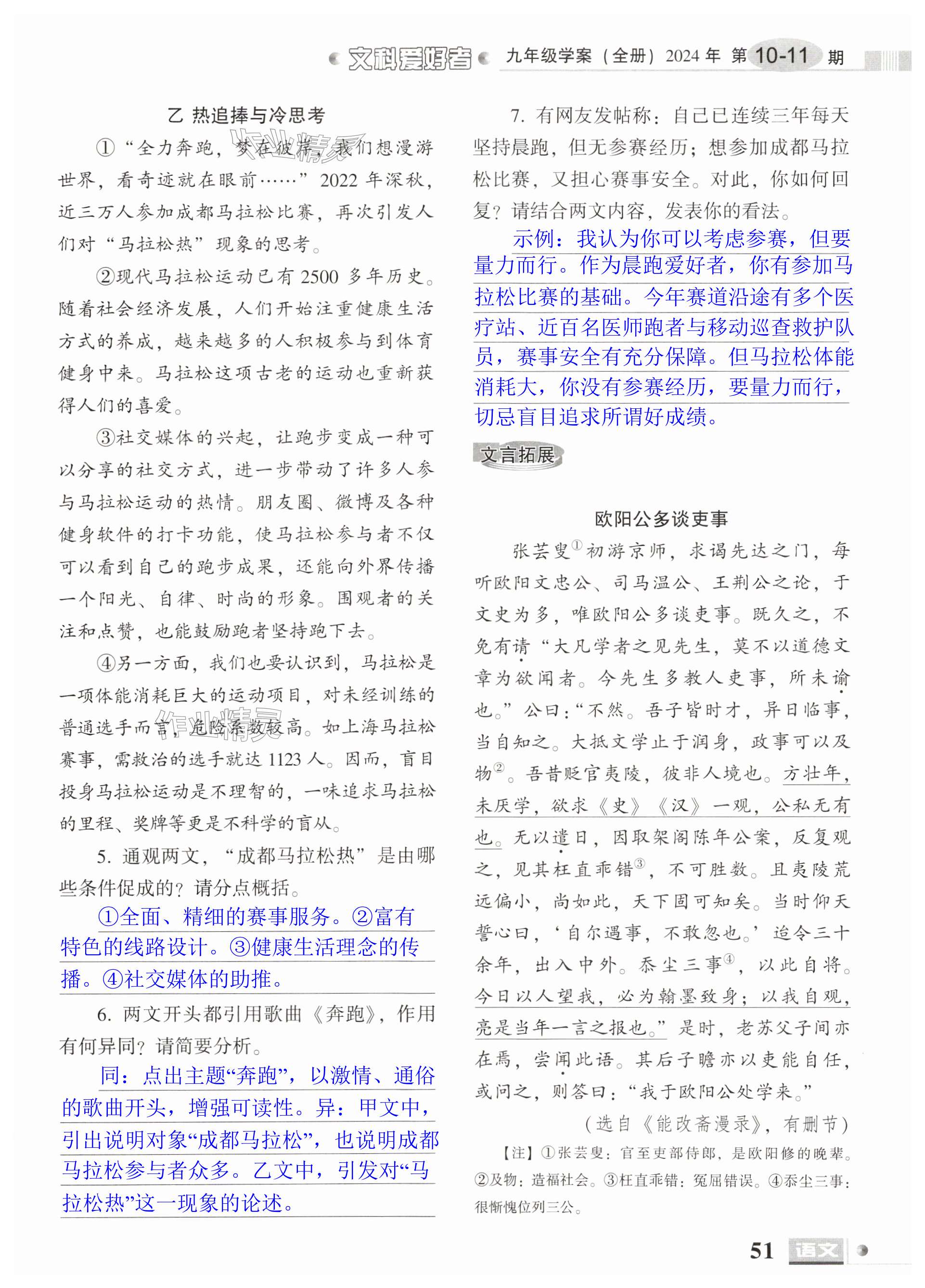 2024年文科爱好者九年级语文全一册人教版第10-11期