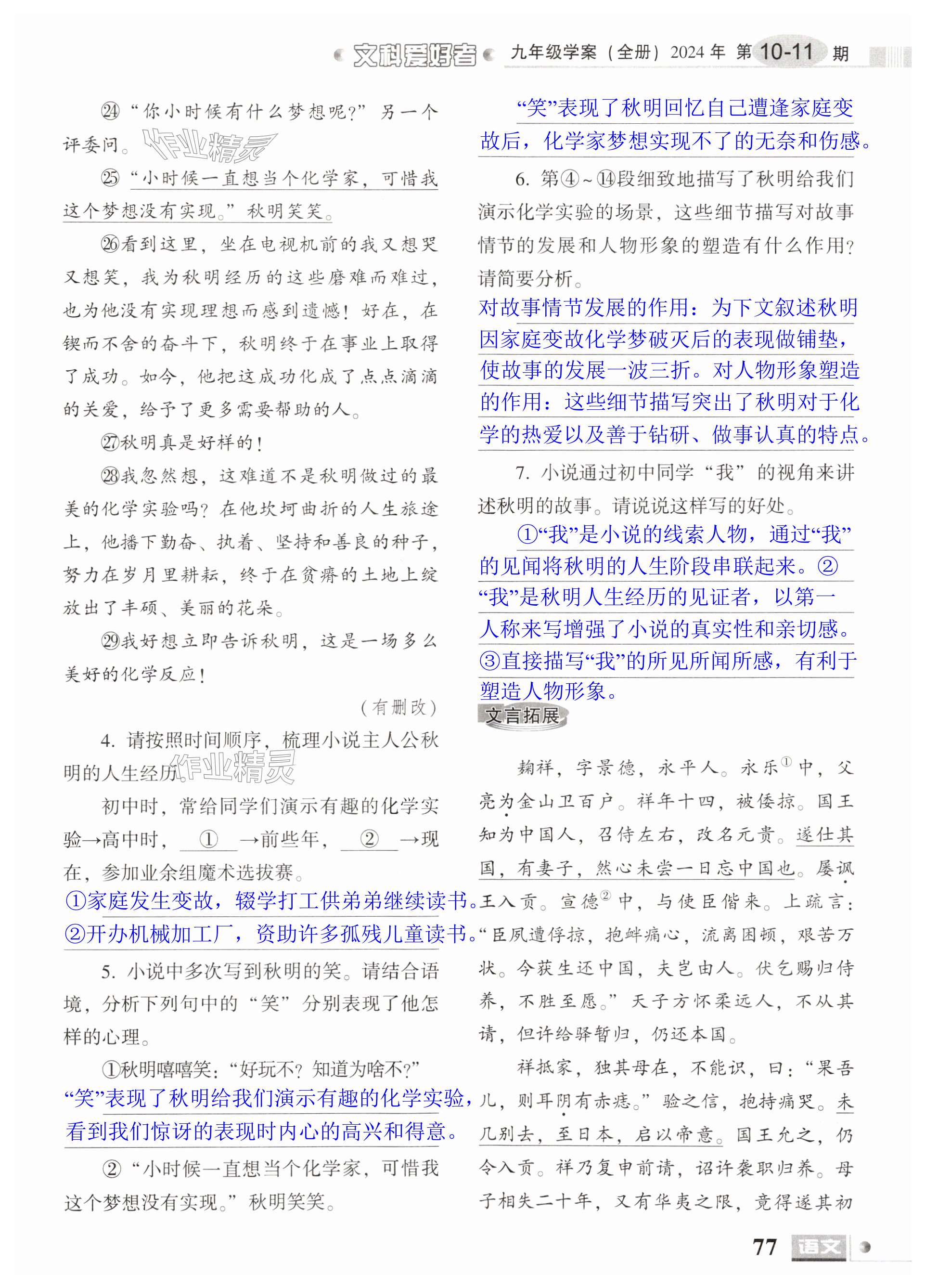 2024年文科爱好者九年级语文全一册人教版第10-11期