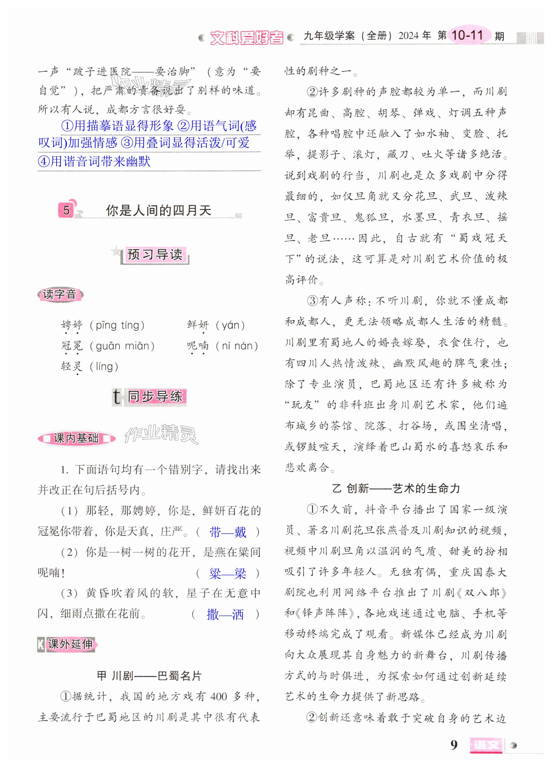 2024年文科爱好者九年级语文全一册人教版第10-11期