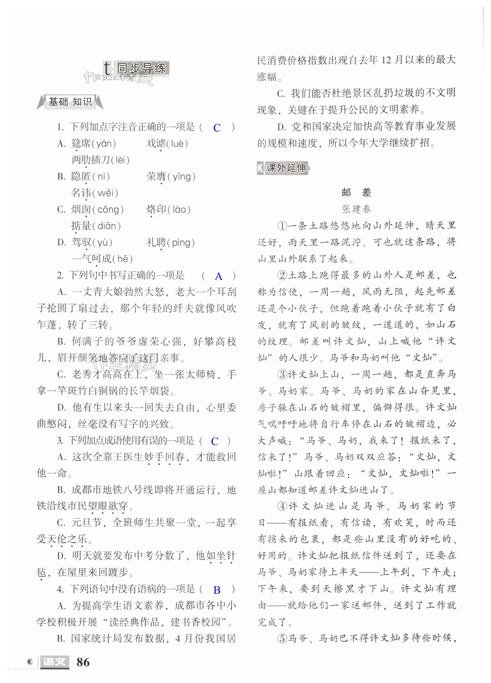 注:目前有些书本章节名称可能整理的还不是很完善,但都是按照顺序排列的,请同学们按照顺序仔细查找。练习册 2024年文科爱好者九年级语文全一册人教版第10-11期 答案主要是用来给同学们做完题方便对答案用的,请勿直接抄袭。