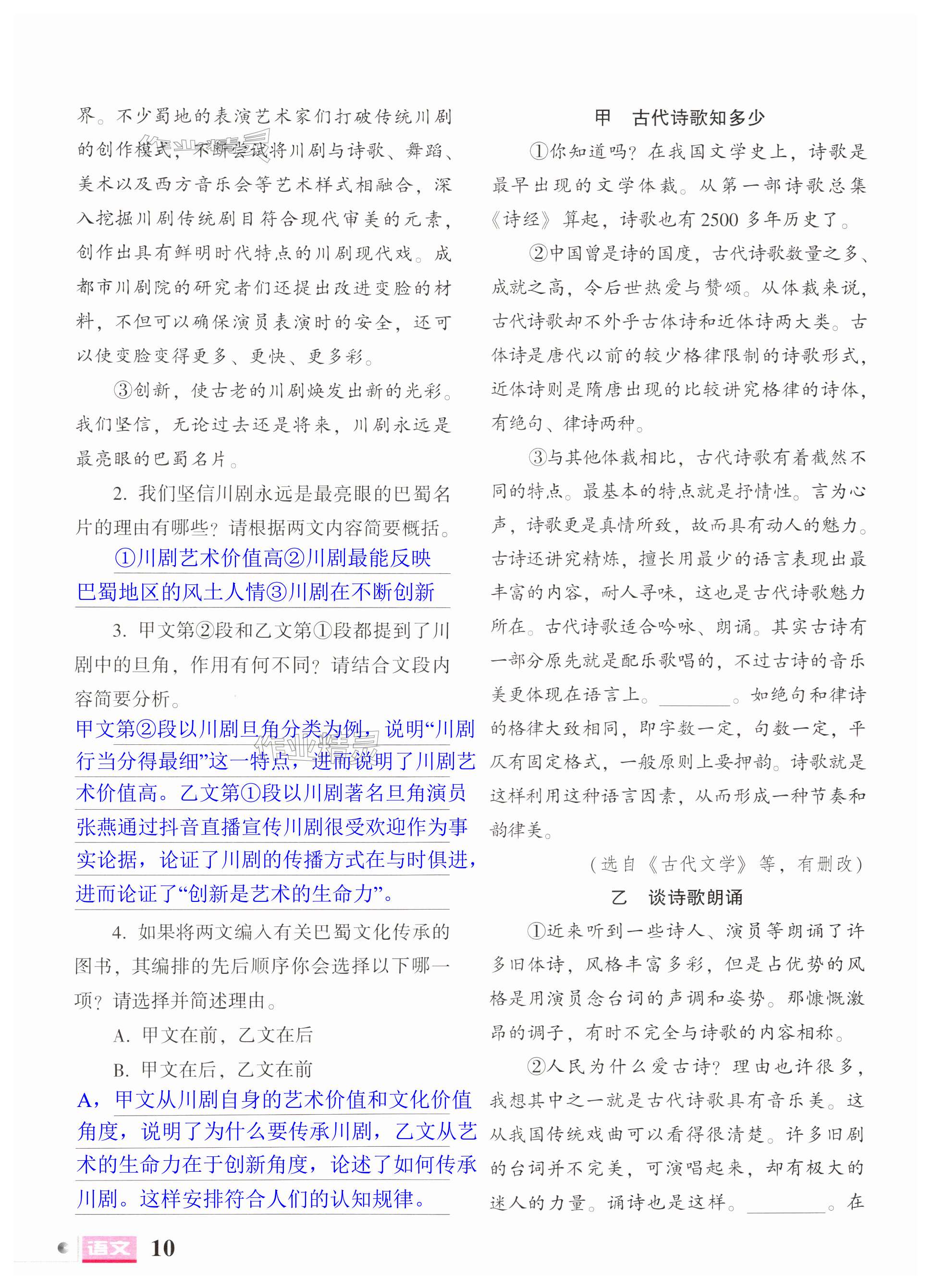 注:目前有些书本章节名称可能整理的还不是很完善,但都是按照顺序排列的,请同学们按照顺序仔细查找。练习册 2024年文科爱好者九年级语文全一册人教版第10-11期 答案主要是用来给同学们做完题方便对答案用的,请勿直接抄袭。