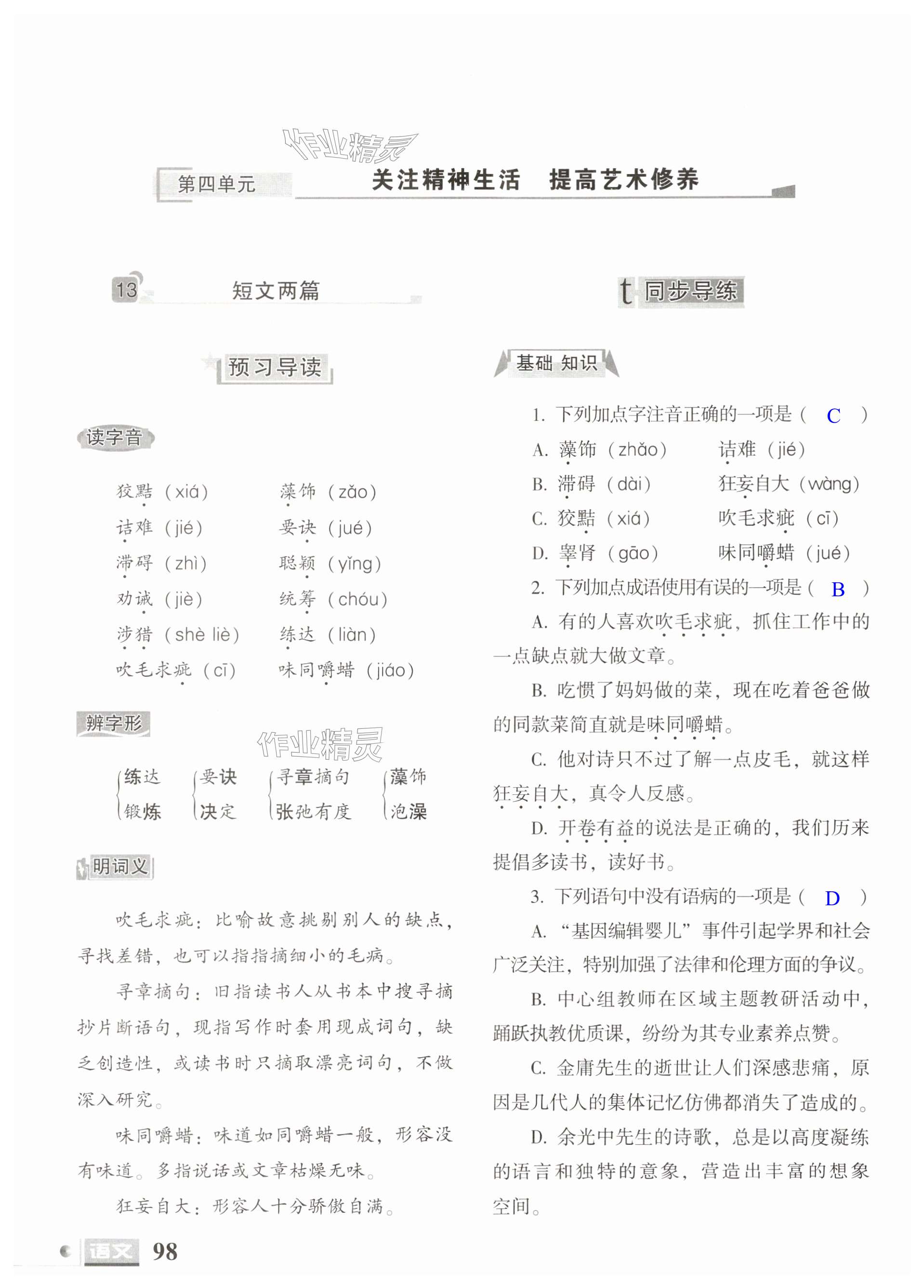 注:目前有些书本章节名称可能整理的还不是很完善,但都是按照顺序排列的,请同学们按照顺序仔细查找。练习册 2024年文科爱好者九年级语文全一册人教版第10-11期 答案主要是用来给同学们做完题方便对答案用的,请勿直接抄袭。