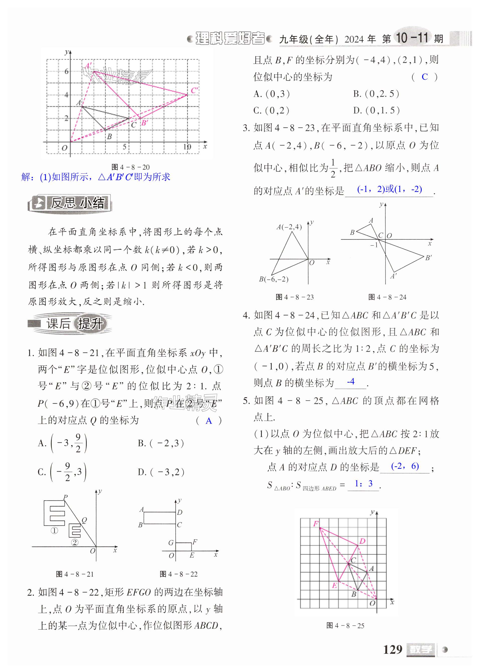 注:目前有些书本章节名称可能整理的还不是很完善,但都是按照顺序排列的,请同学们按照顺序仔细查找。练习册 2024年理科爱好者九年级数学全一册北师大版第10-11期 答案主要是用来给同学们做完题方便对答案用的,请勿直接抄袭。