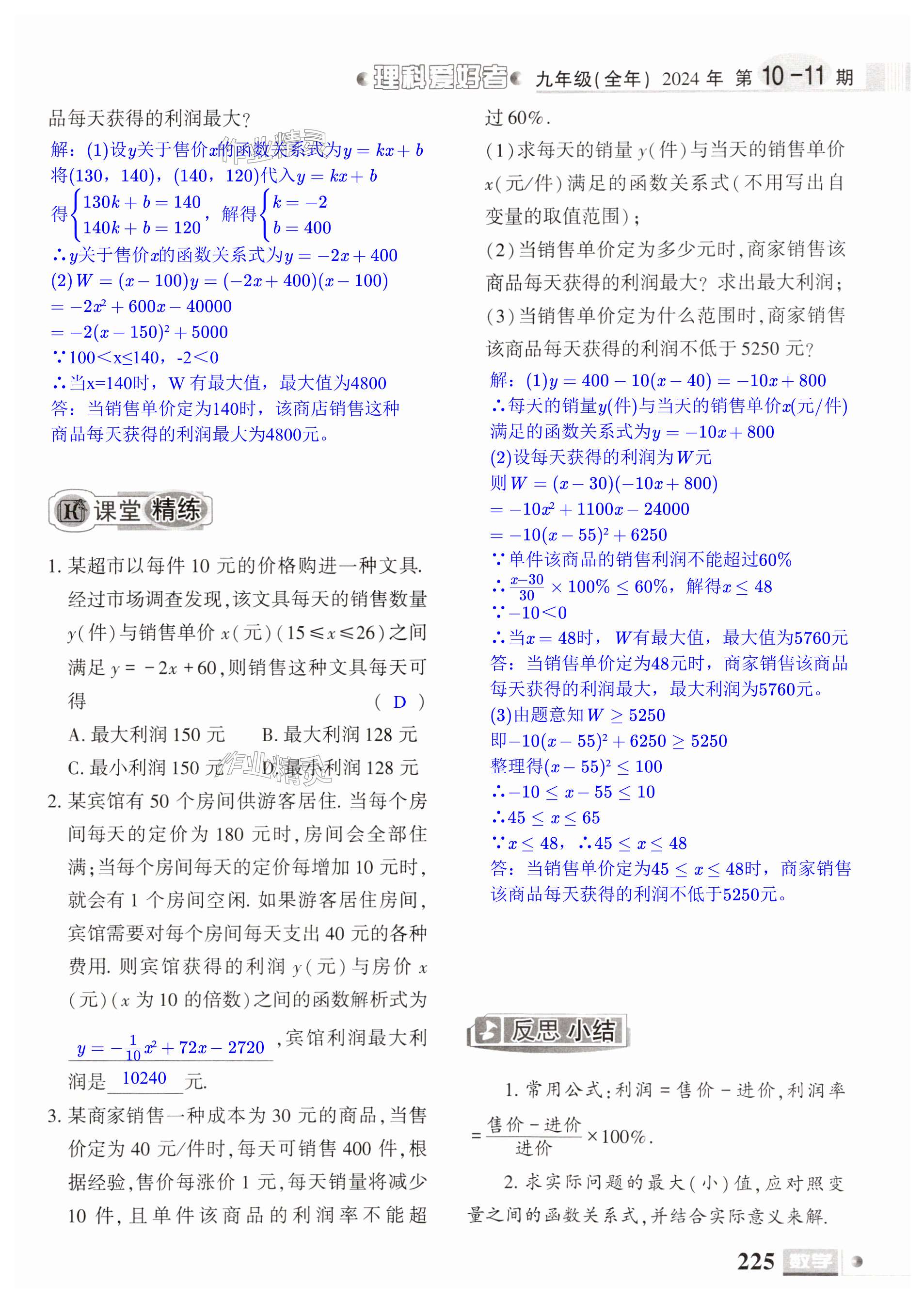 2024年理科爱好者九年级数学全一册北师大版第10-11期