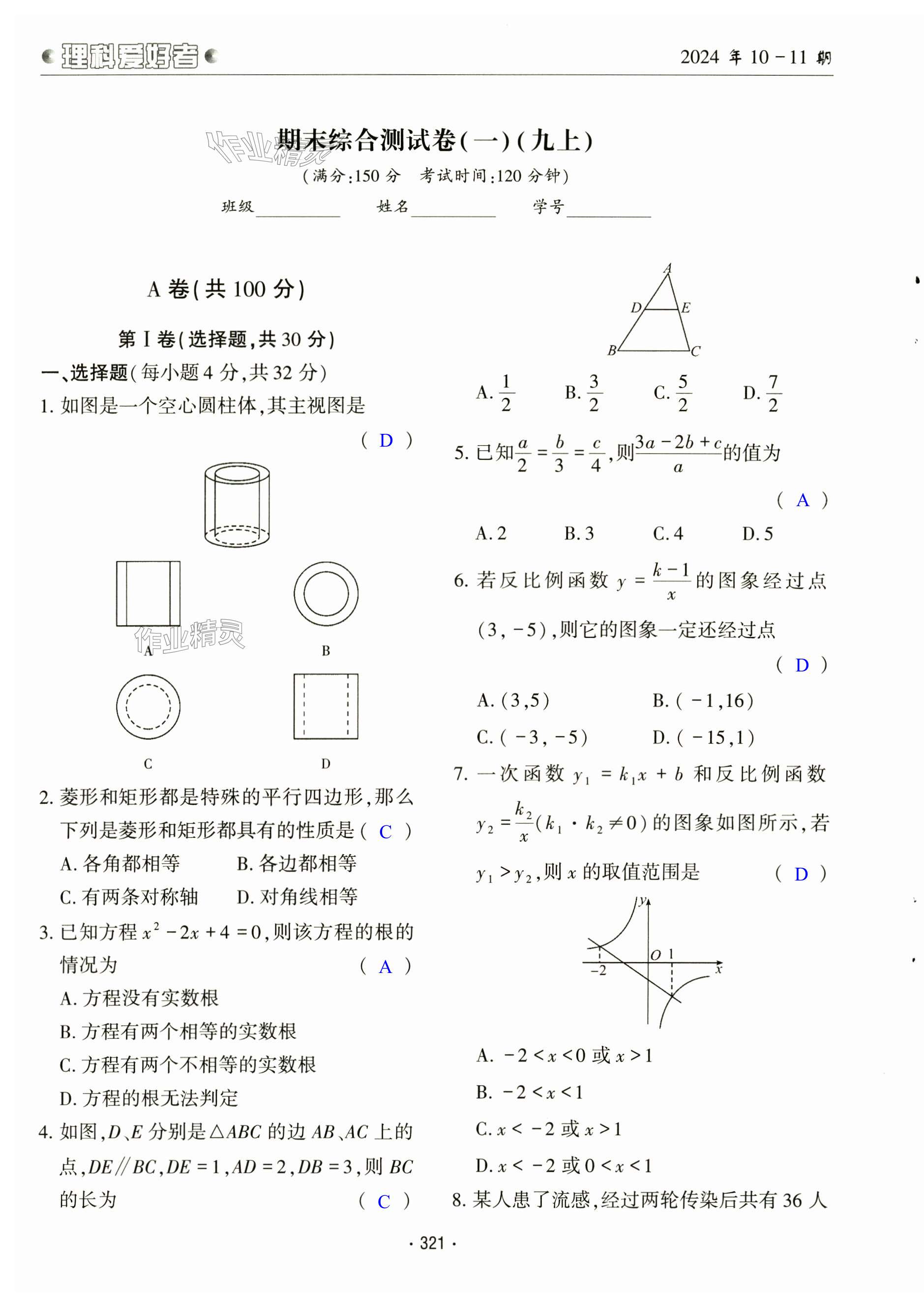 注:目前有些书本章节名称可能整理的还不是很完善,但都是按照顺序排列的,请同学们按照顺序仔细查找。练习册 2024年理科爱好者九年级数学全一册北师大版第10-11期 答案主要是用来给同学们做完题方便对答案用的,请勿直接抄袭。