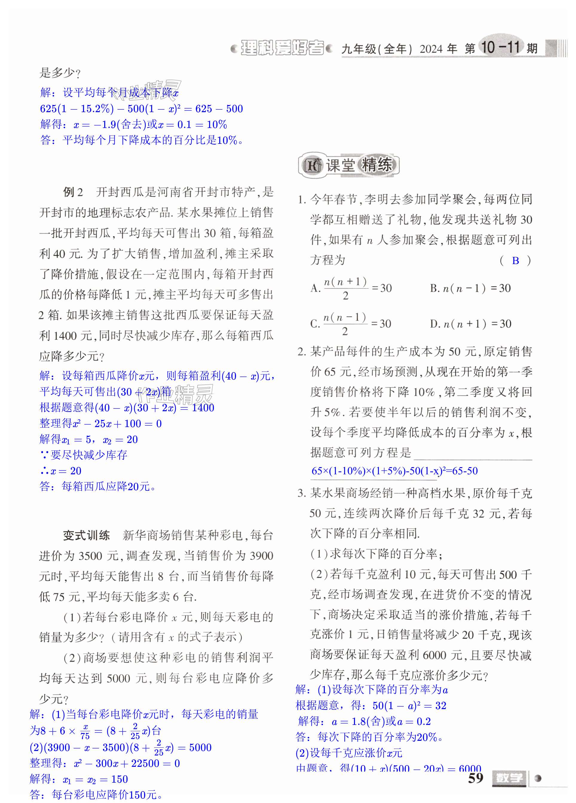 2024年理科爱好者九年级数学全一册北师大版第10-11期