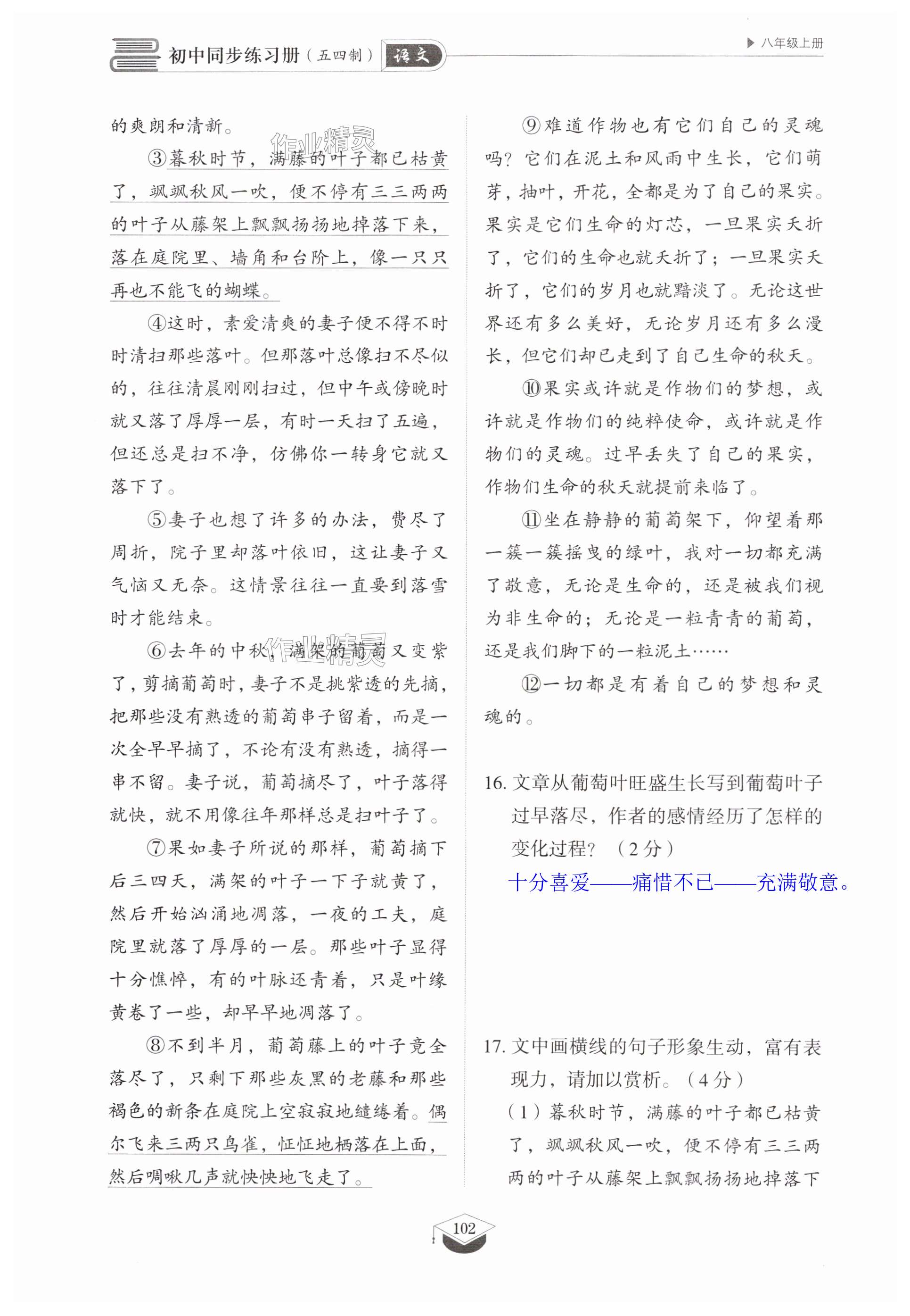 2024年同步练习册山东教育出版社八年级语文上册人教版五四制
