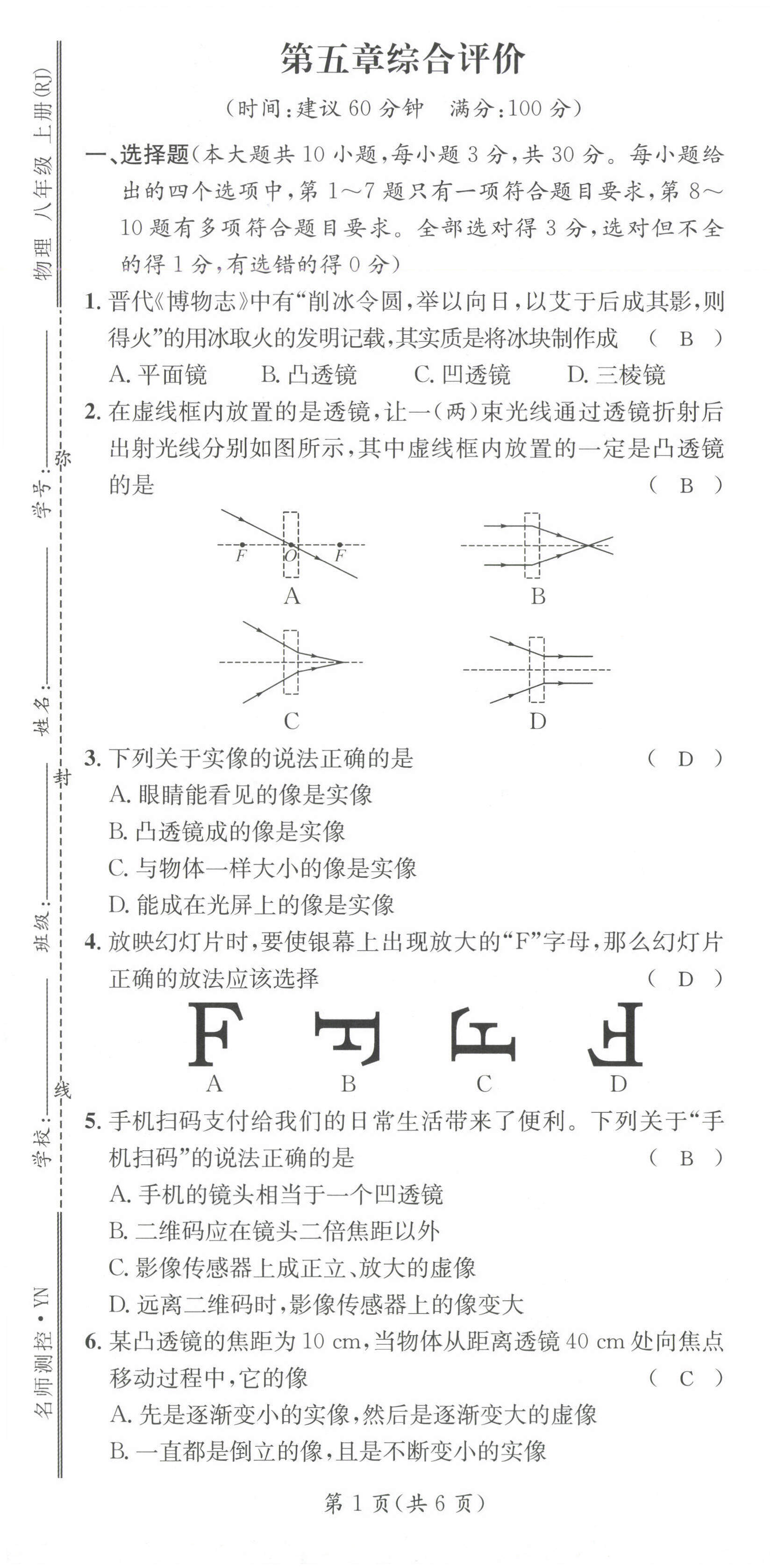 注:目前有些书本章节名称可能整理的还不是很完善,但都是按照顺序排列的,请同学们按照顺序仔细查找。练习册 2024年名师测控八年级物理上册人教版云南专版 答案主要是用来给同学们做完题方便对答案用的,请勿直接抄袭。
