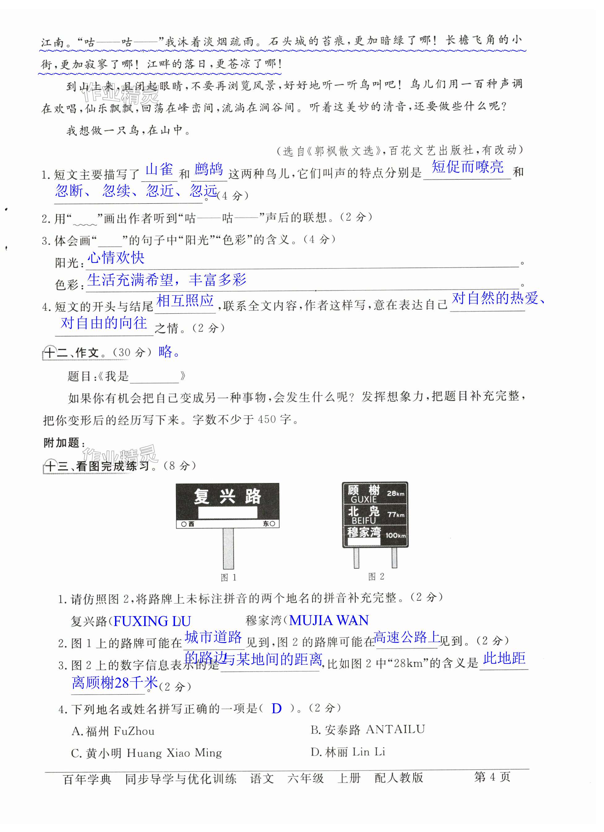 注:目前有些书本章节名称可能整理的还不是很完善,但都是按照顺序排列的,请同学们按照顺序仔细查找。练习册 2024年同步导学与优化训练六年级语文上册人教版 答案主要是用来给同学们做完题方便对答案用的,请勿直接抄袭。