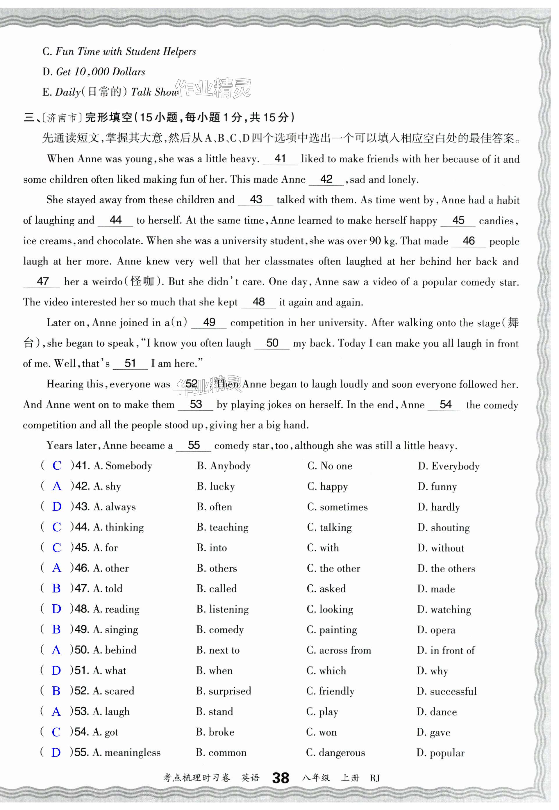 注:目前有些书本章节名称可能整理的还不是很完善,但都是按照顺序排列的,请同学们按照顺序仔细查找。练习册 2024年王朝霞考点梳理时习卷八年级英语上册人教版 答案主要是用来给同学们做完题方便对答案用的,请勿直接抄袭。