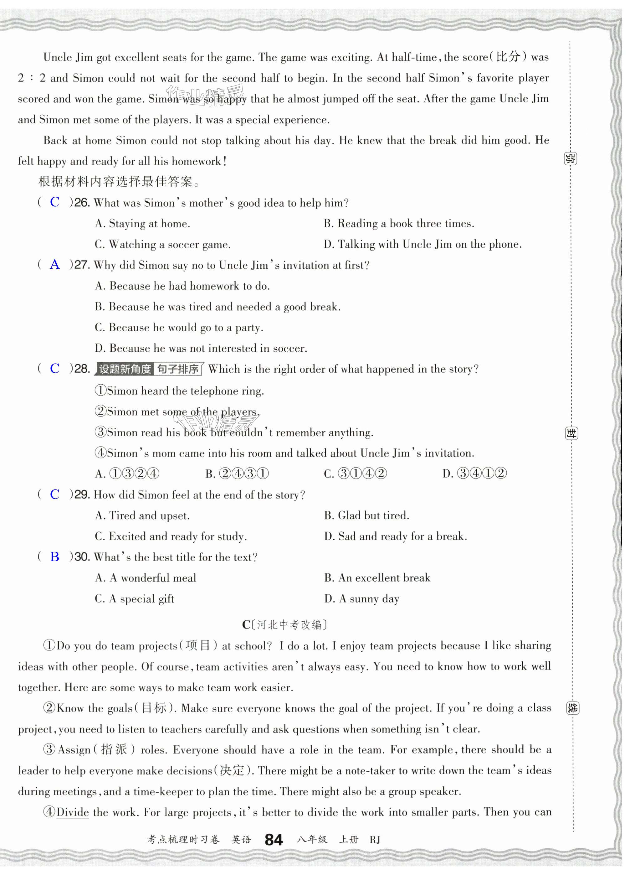 2024年王朝霞考点梳理时习卷八年级英语上册人教版