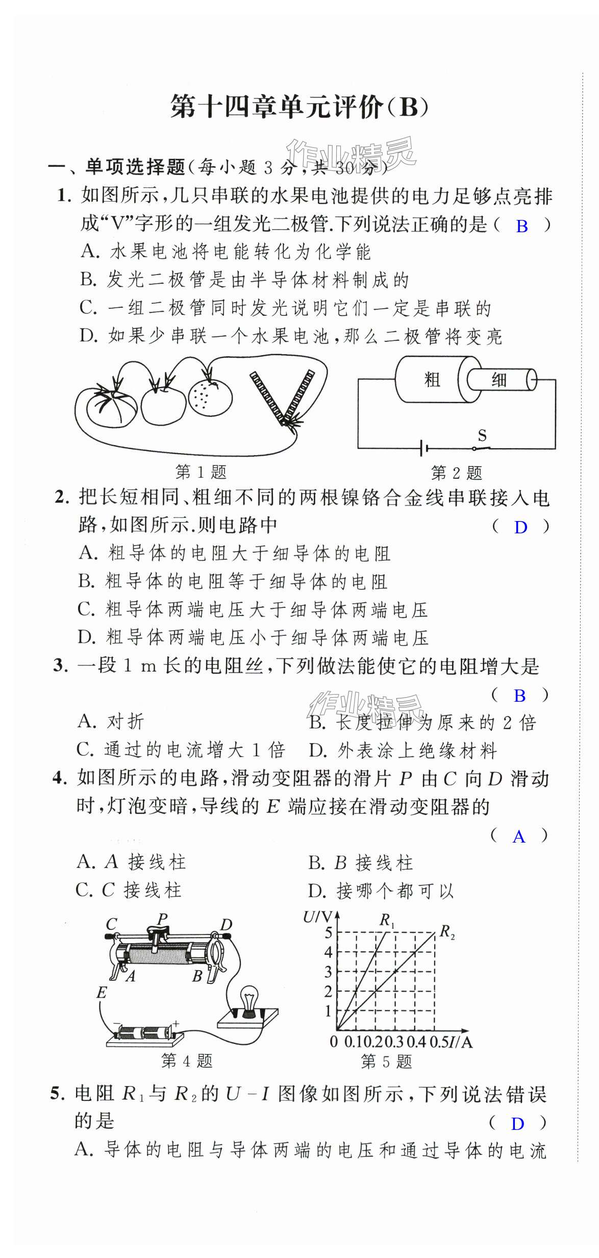 注:目前有些书本章节名称可能整理的还不是很完善,但都是按照顺序排列的,请同学们按照顺序仔细查找。练习册 2024年多维互动提优课堂九年级物理上册苏科版 答案主要是用来给同学们做完题方便对答案用的,请勿直接抄袭。
