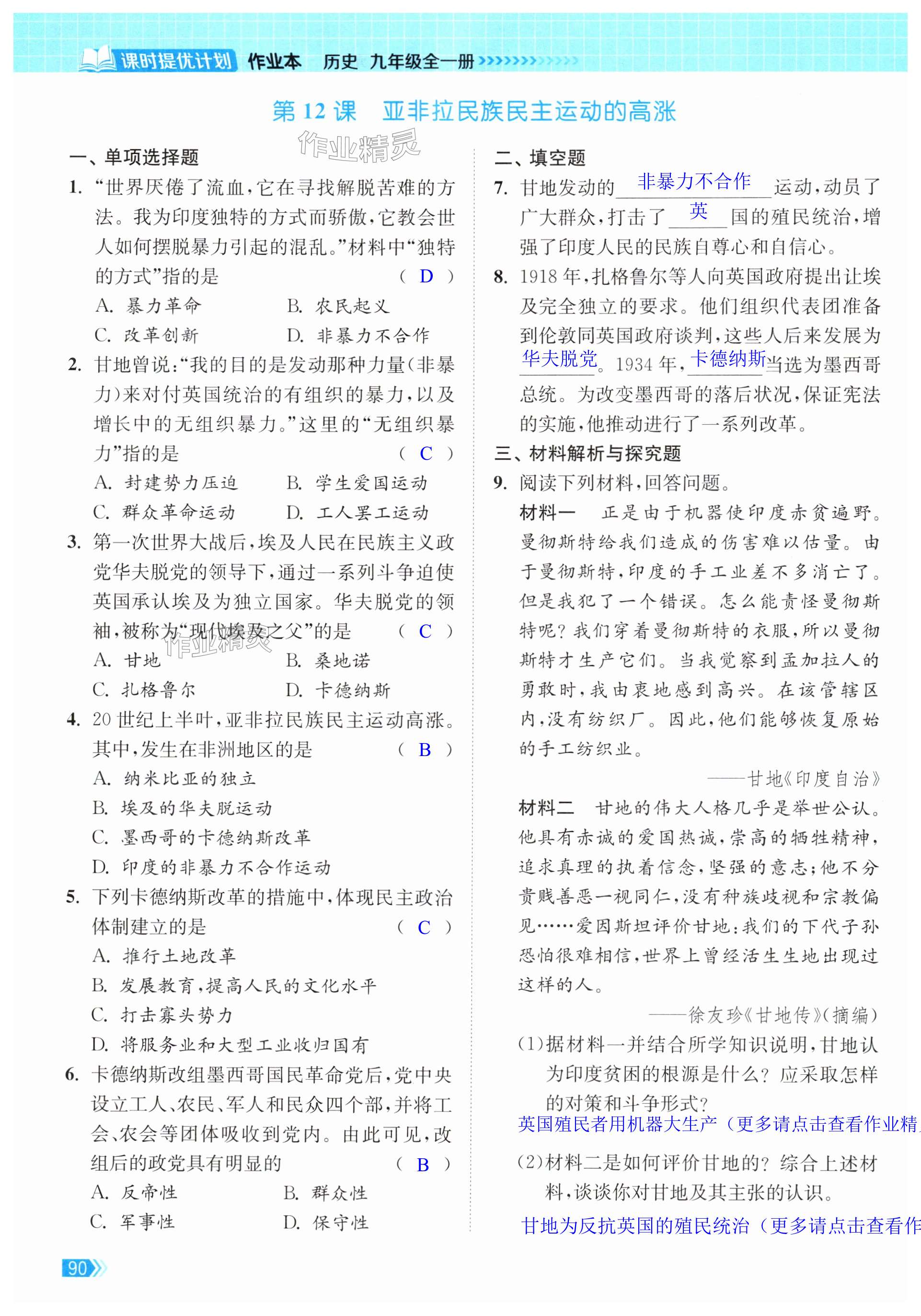 注:目前有些书本章节名称可能整理的还不是很完善,但都是按照顺序排列的,请同学们按照顺序仔细查找。练习册 2024年课时提优计划作业本九年级历史全一册人教版 答案主要是用来给同学们做完题方便对答案用的,请勿直接抄袭。