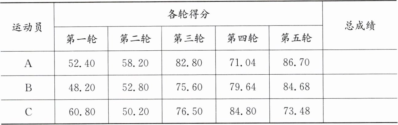 4. 在一次比赛中,三名跳水运动员5轮的得分如下表: