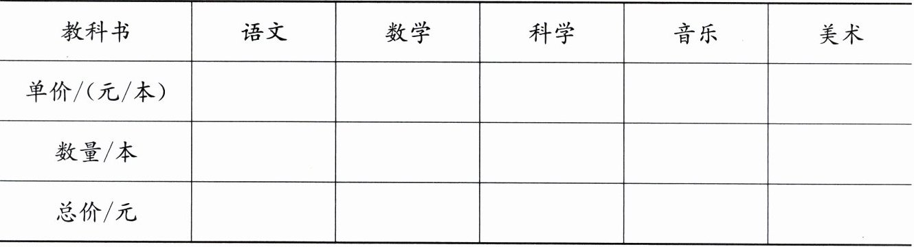 | 单价/(元/本) | ___ | ___ | ___ | ___ | ___ |