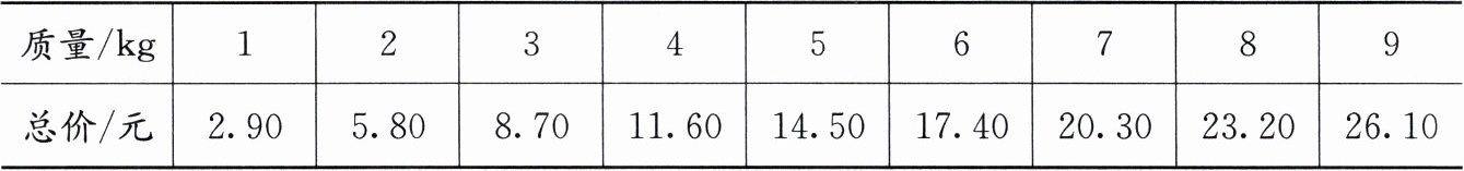 |总价/元|2.90|5.80|8.70|11.60|14.50|17.40|20.30|23.20|26.10|