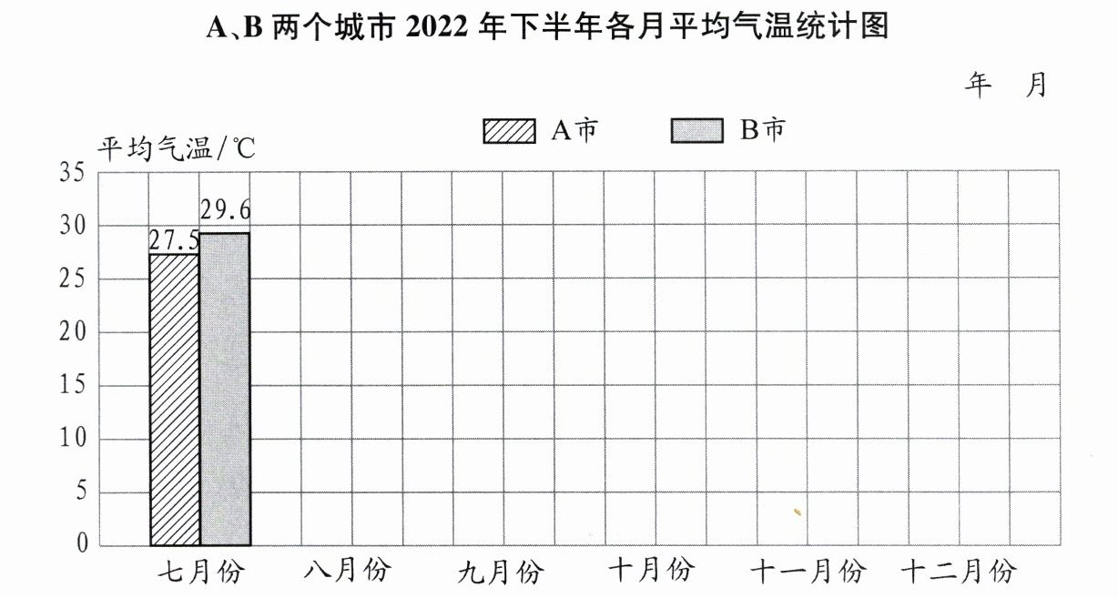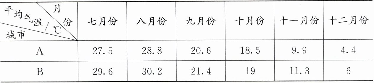 3. A、B两个城市2022年下半年各月平均气温如下表。