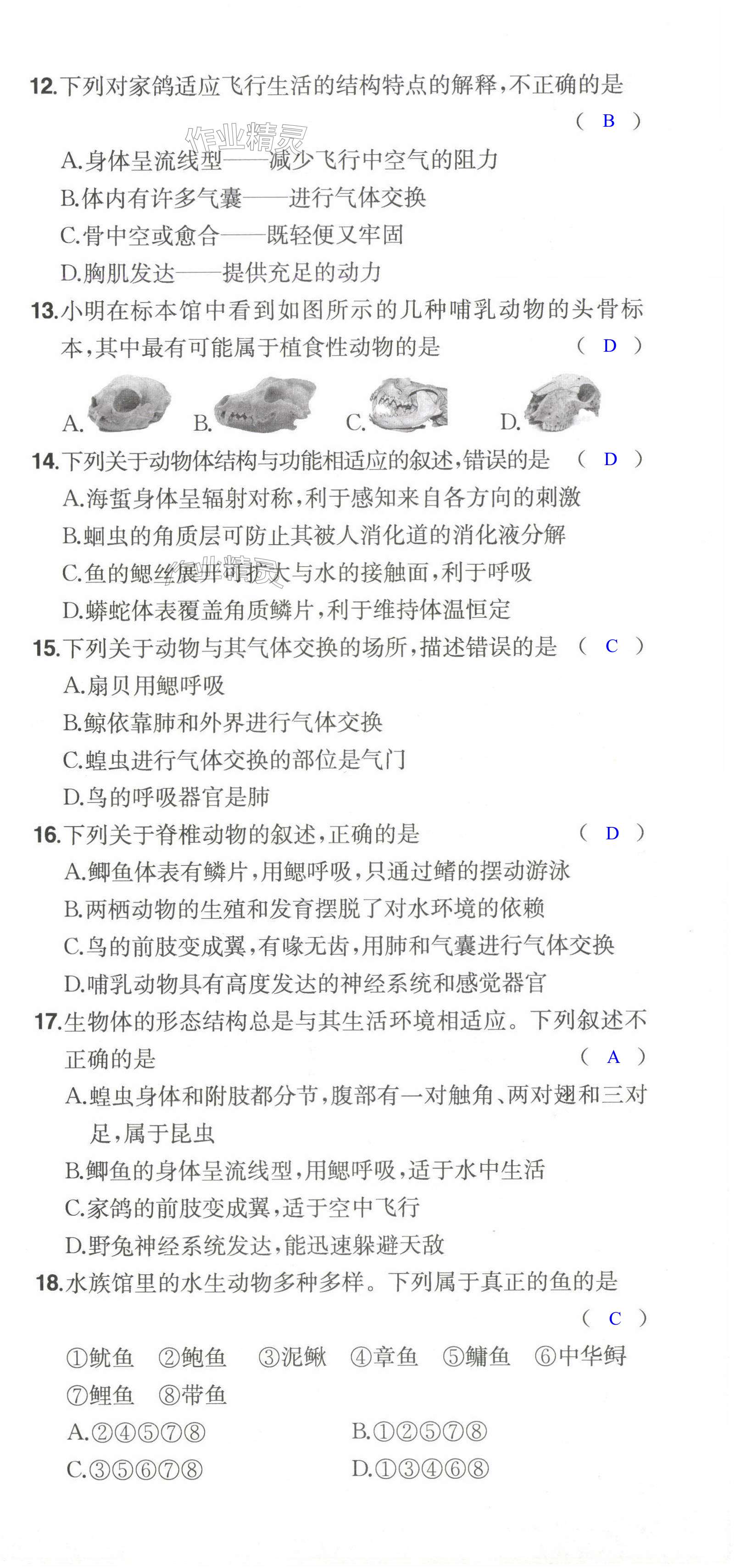 注:目前有些书本章节名称可能整理的还不是很完善,但都是按照顺序排列的,请同学们按照顺序仔细查找。练习册 2024年一本同步训练八年级生物上册人教版 答案主要是用来给同学们做完题方便对答案用的,请勿直接抄袭。