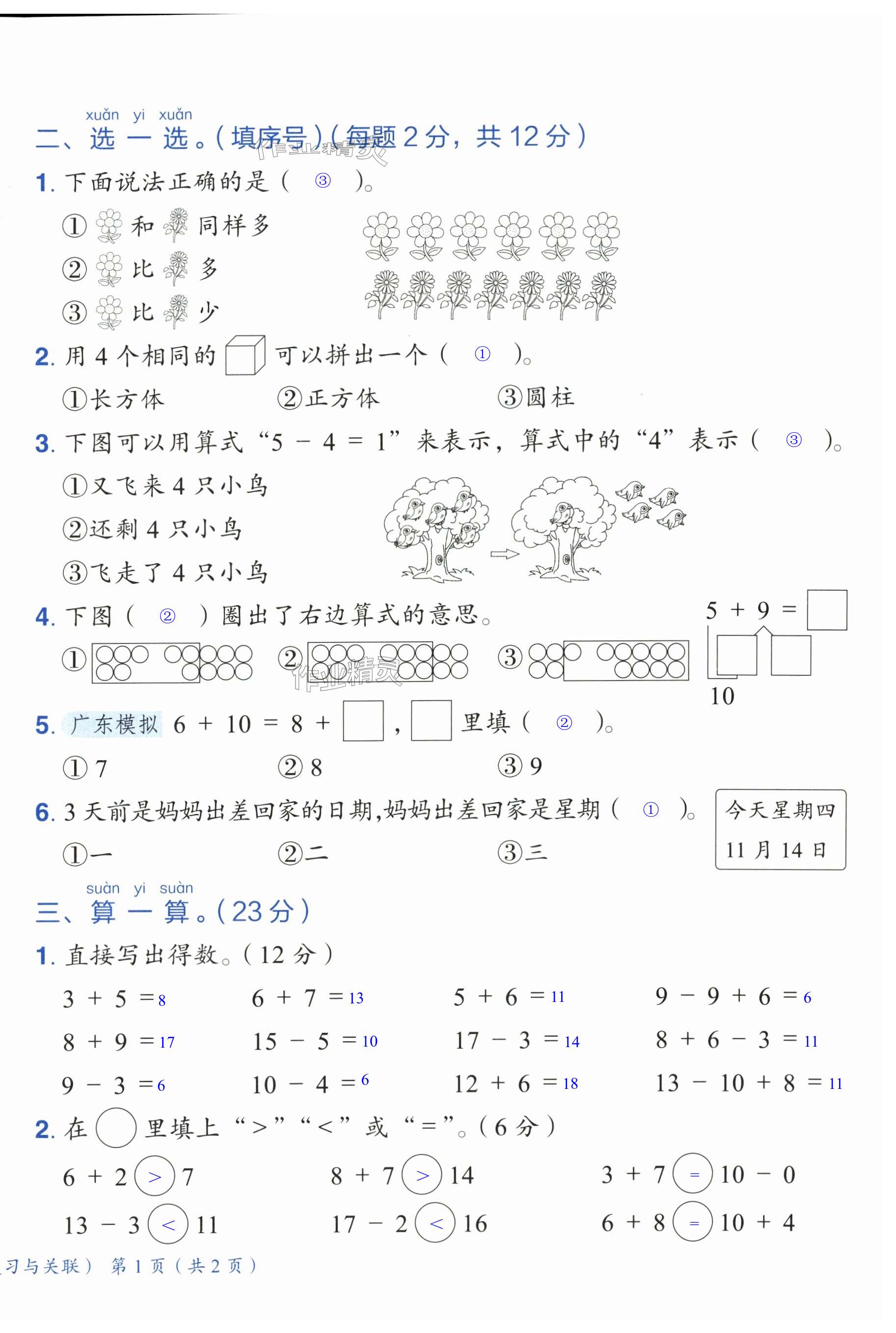 注:目前有些书本章节名称可能整理的还不是很完善,但都是按照顺序排列的,请同学们按照顺序仔细查找。练习册 2024年黄冈小状元作业本一年级数学上册人教版广东专版 答案主要是用来给同学们做完题方便对答案用的,请勿直接抄袭。