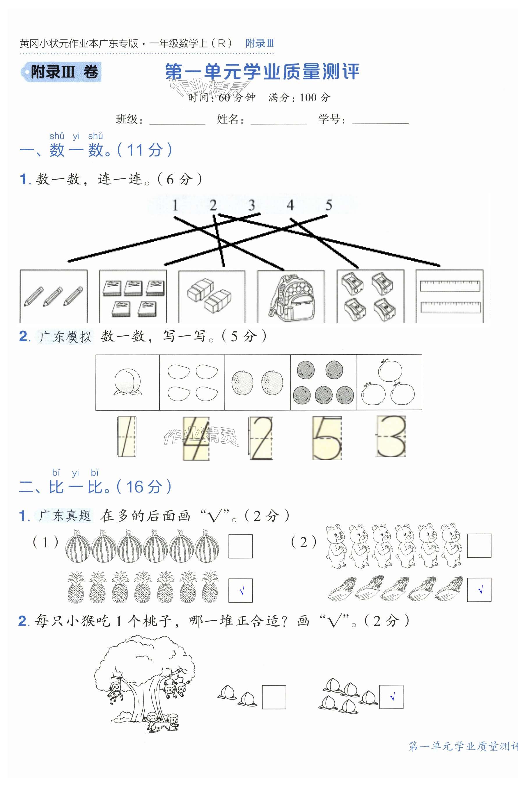 注:目前有些书本章节名称可能整理的还不是很完善,但都是按照顺序排列的,请同学们按照顺序仔细查找。练习册 2024年黄冈小状元作业本一年级数学上册人教版广东专版 答案主要是用来给同学们做完题方便对答案用的,请勿直接抄袭。