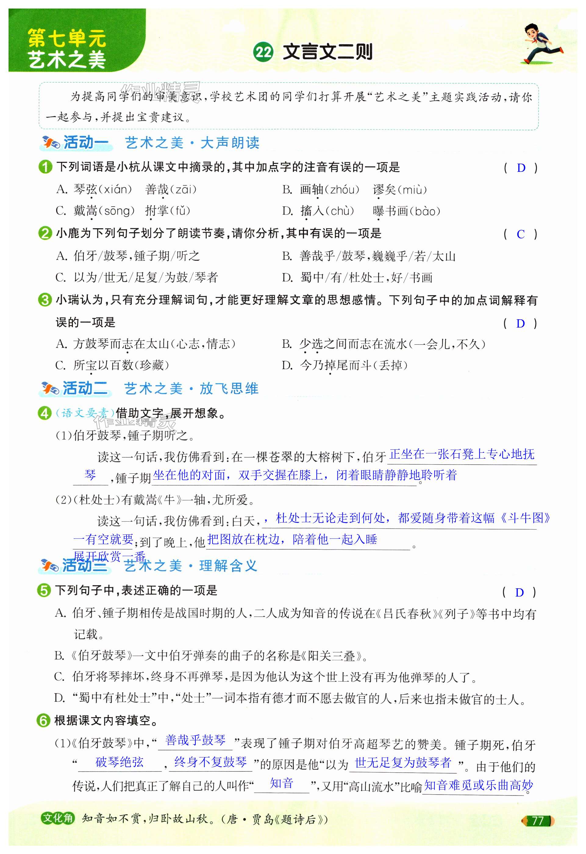 注:目前有些书本章节名称可能整理的还不是很完善,但都是按照顺序排列的,请同学们按照顺序仔细查找。练习册 2024年奔跑吧少年六年级语文上册人教版 答案主要是用来给同学们做完题方便对答案用的,请勿直接抄袭。