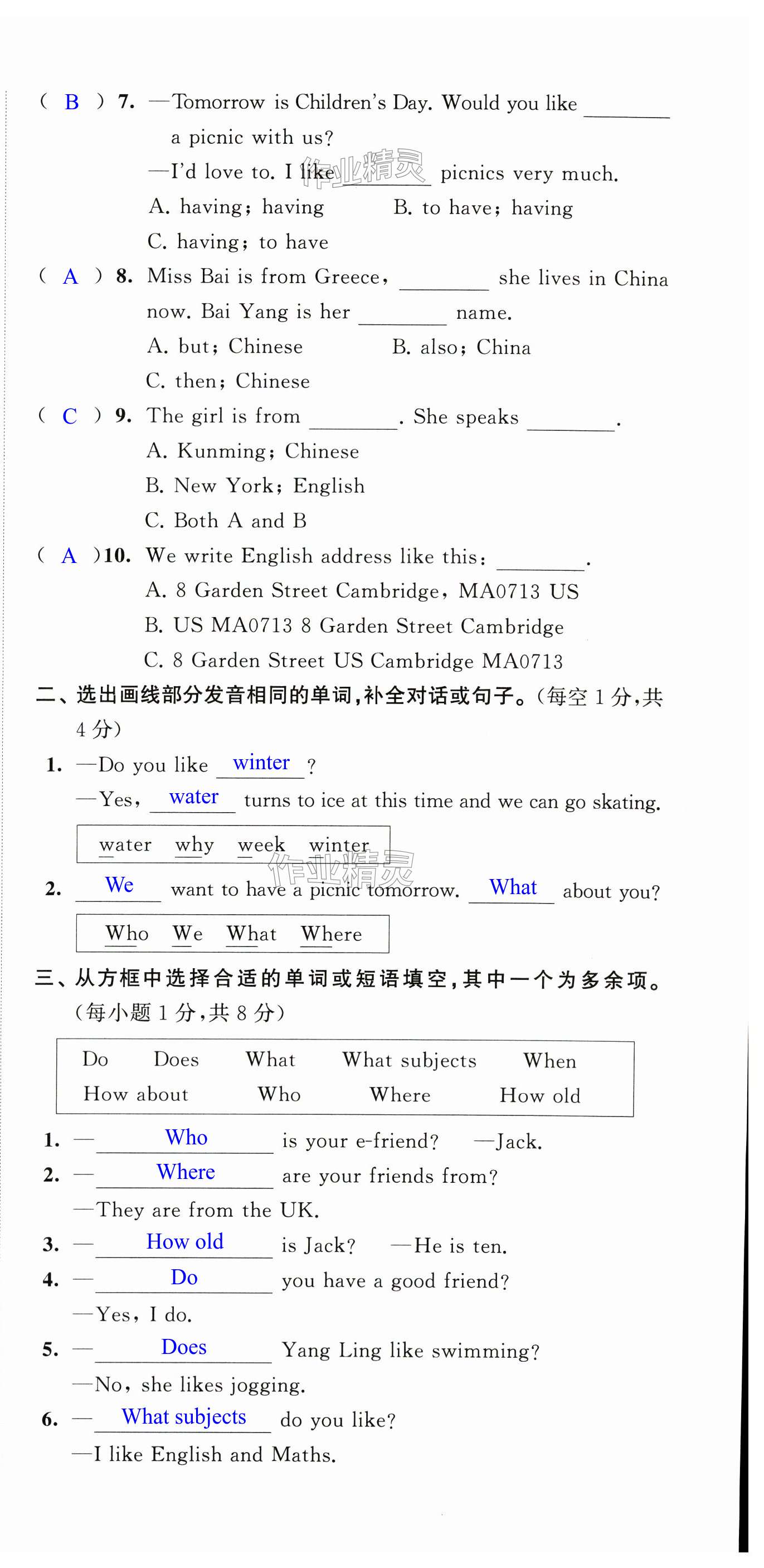 注:目前有些书本章节名称可能整理的还不是很完善,但都是按照顺序排列的,请同学们按照顺序仔细查找。练习册 2024年配套单元检测江苏五年级英语上册译林版 答案主要是用来给同学们做完题方便对答案用的,请勿直接抄袭。