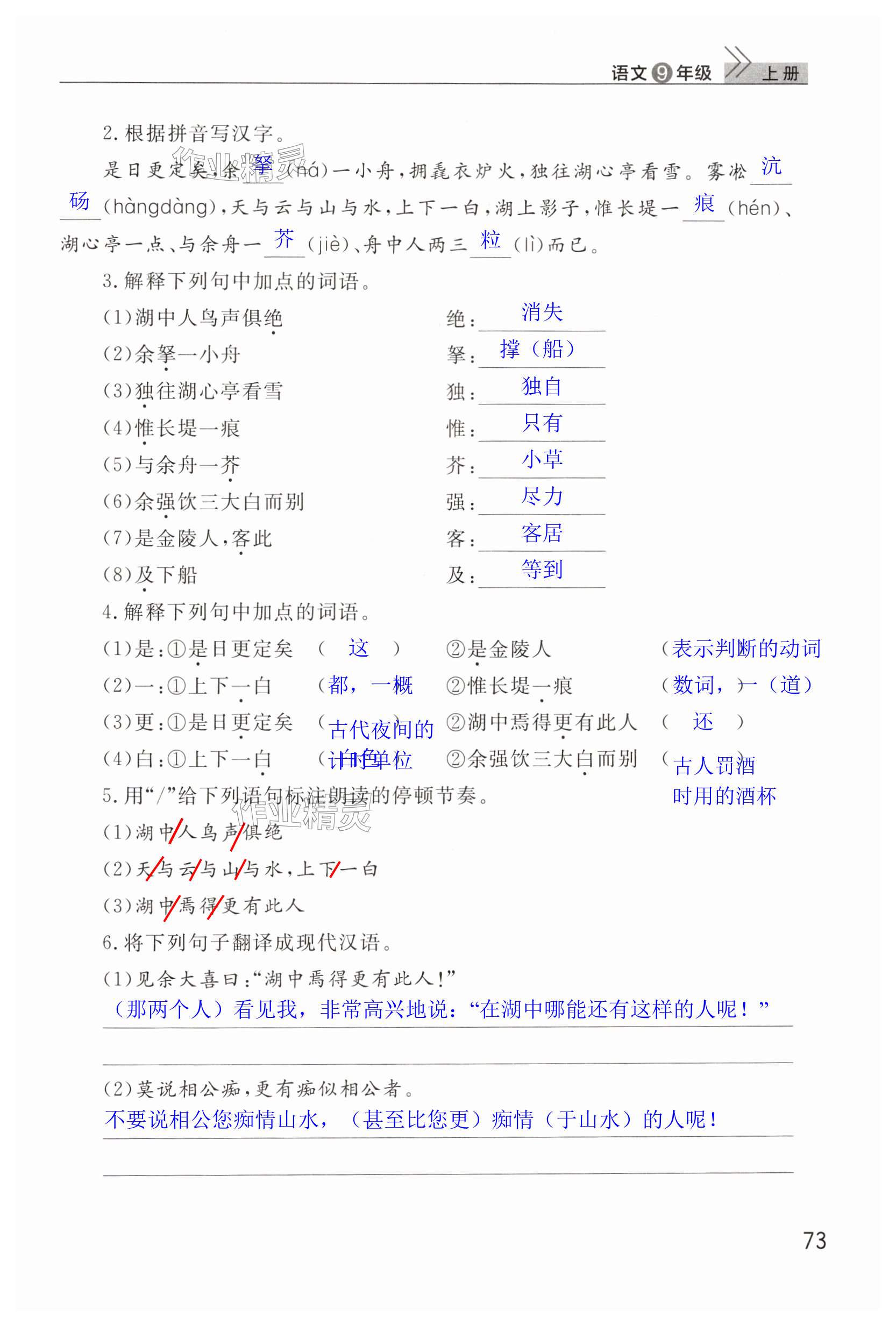 注:目前有些书本章节名称可能整理的还不是很完善,但都是按照顺序排列的,请同学们按照顺序仔细查找。练习册 2024年课堂作业武汉出版社九年级语文上册人教版 答案主要是用来给同学们做完题方便对答案用的,请勿直接抄袭。