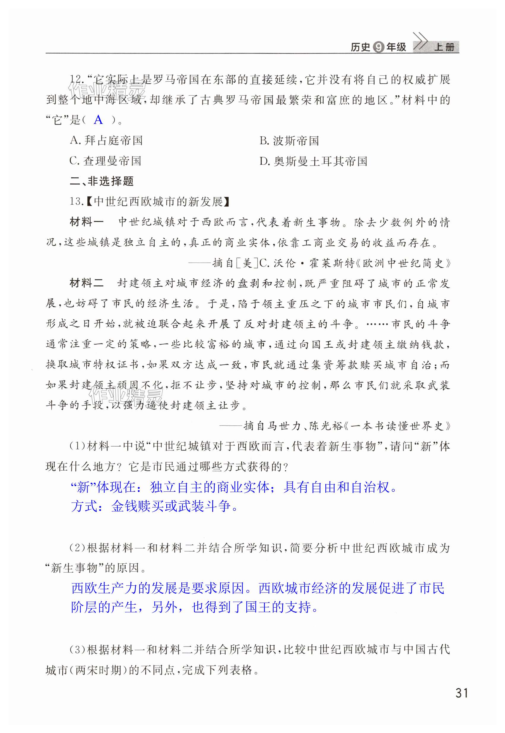 注:目前有些书本章节名称可能整理的还不是很完善,但都是按照顺序排列的,请同学们按照顺序仔细查找。练习册 2024年课堂作业武汉出版社九年级历史上册人教版 答案主要是用来给同学们做完题方便对答案用的,请勿直接抄袭。