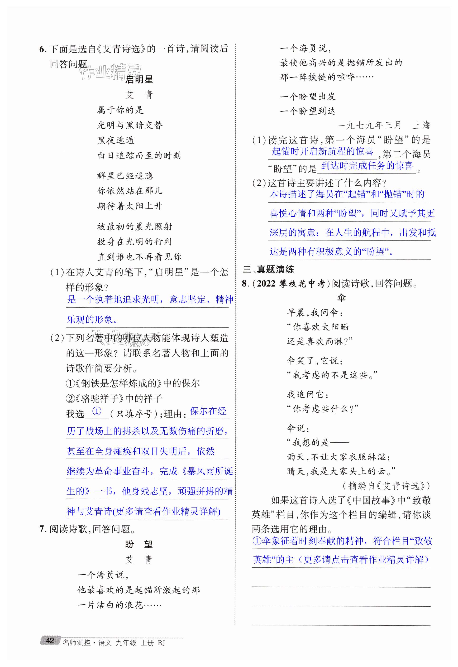 注:目前有些书本章节名称可能整理的还不是很完善,但都是按照顺序排列的,请同学们按照顺序仔细查找。练习册 2024年名师测控九年级语文上册人教版河北专版 答案主要是用来给同学们做完题方便对答案用的,请勿直接抄袭。